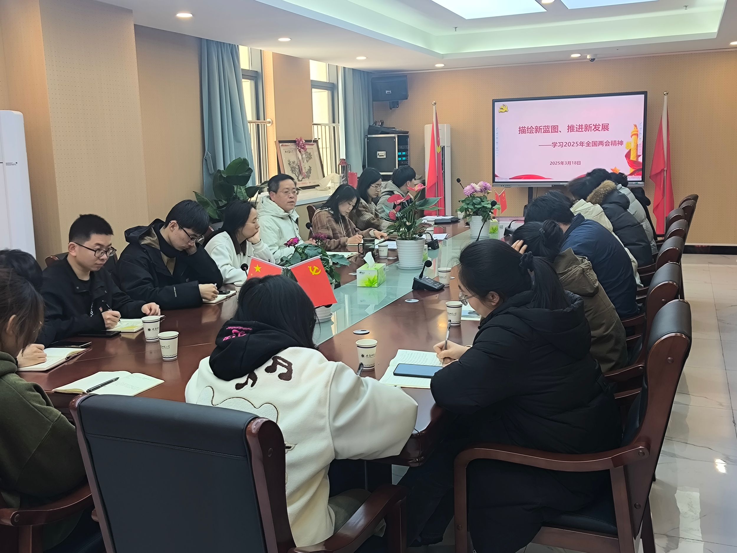 会议伊始,全体党员集中观看了“从春天出发”全国两会纪实视频,深入学习全国两会精神。通过视频学习,党员们对两会的重要意义、主要议程以及国家发展的新目标、新任务有了更深刻的理解。视频强调科技创新和人才培养在国家发展中的重要地位,提出要加快实现高水平科技自立自强,培养更多高素质创新人才。