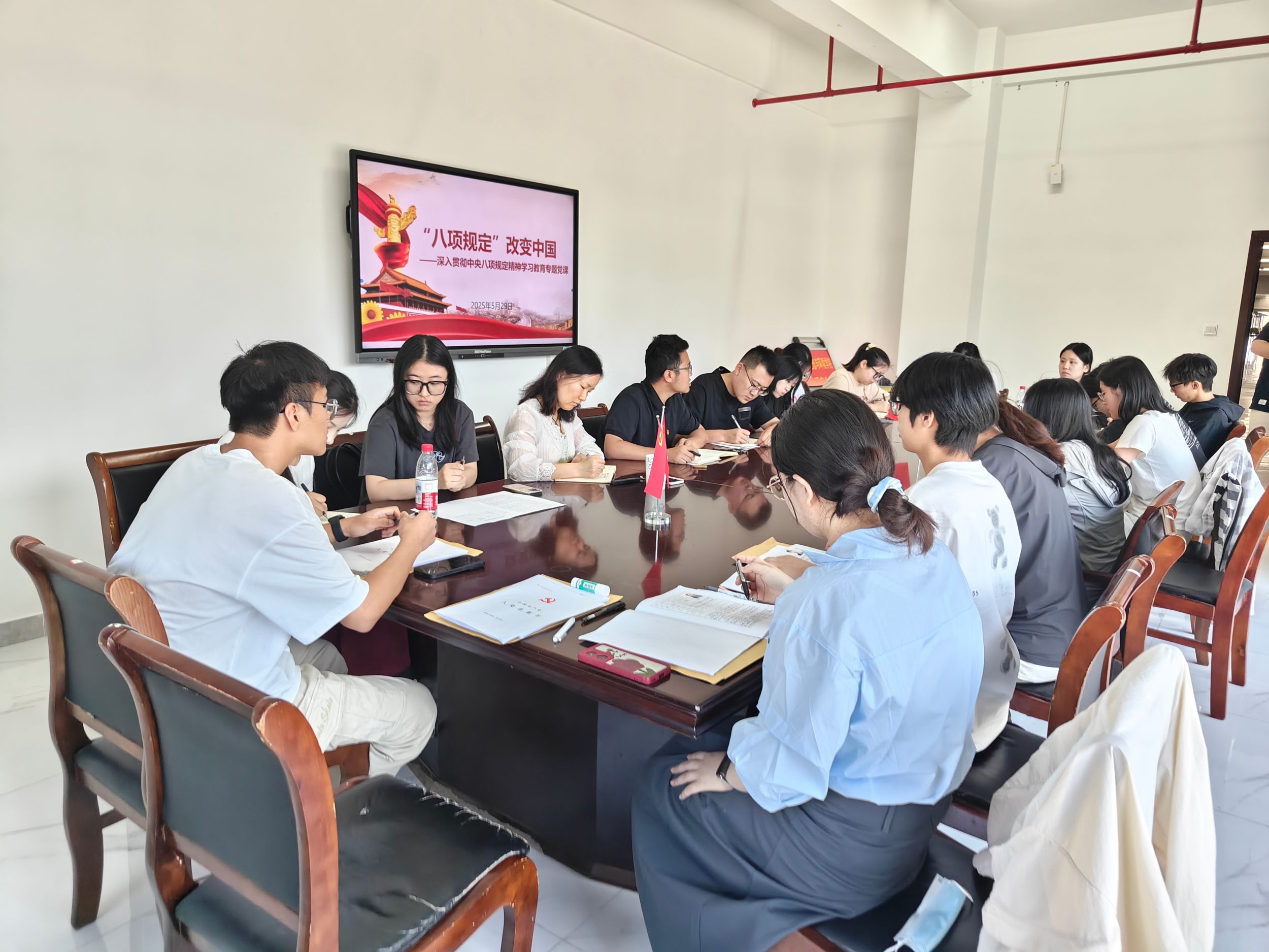 5月29日下午,环境科学专业本科生党支部在清源楼B303开展深入贯彻中央八项规定精神学习教育专题党课。学院党委委员、党委秘书卫正梅,支部全体党员参加会议。会议由支部书记郑合庆主持。