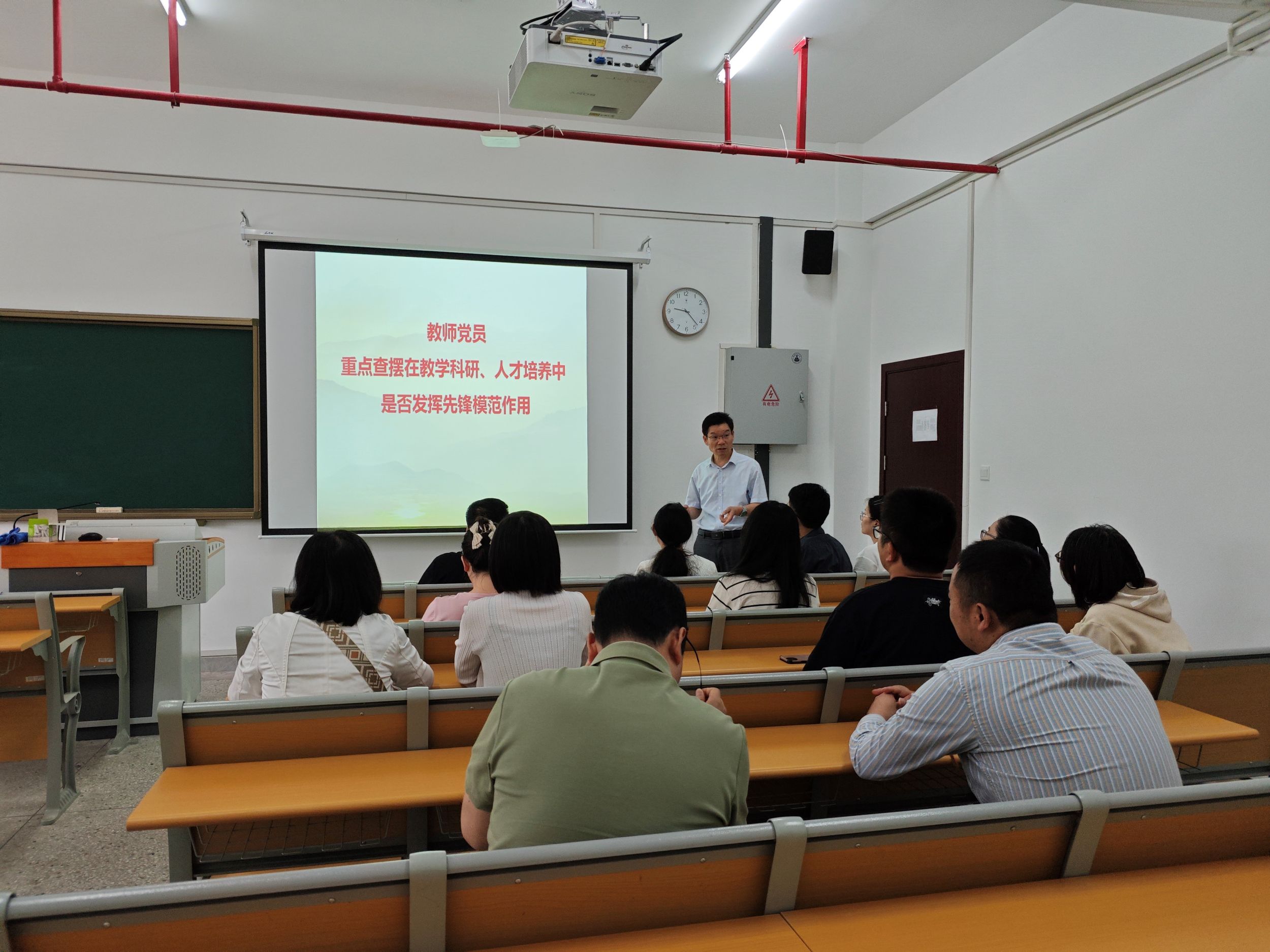 陶海升的党课以“学习领会和贯彻执行中央八项规定及其实施细则精神,服务学生成长成才”为题,强调了贯彻落实中央八项规定精神的重要性,教师党员要从“提高政治站位,压实主体责任;强化纪律意识,严守纪律规矩;深化监督检查,从严执纪问责”等方面深入贯彻中央八项规定精神,严格遵守端午期间相关纪律规定,同时推进问题查摆,重点查摆在教学科研、人才培养等工作中是否积极主动发挥先锋模范作用。
