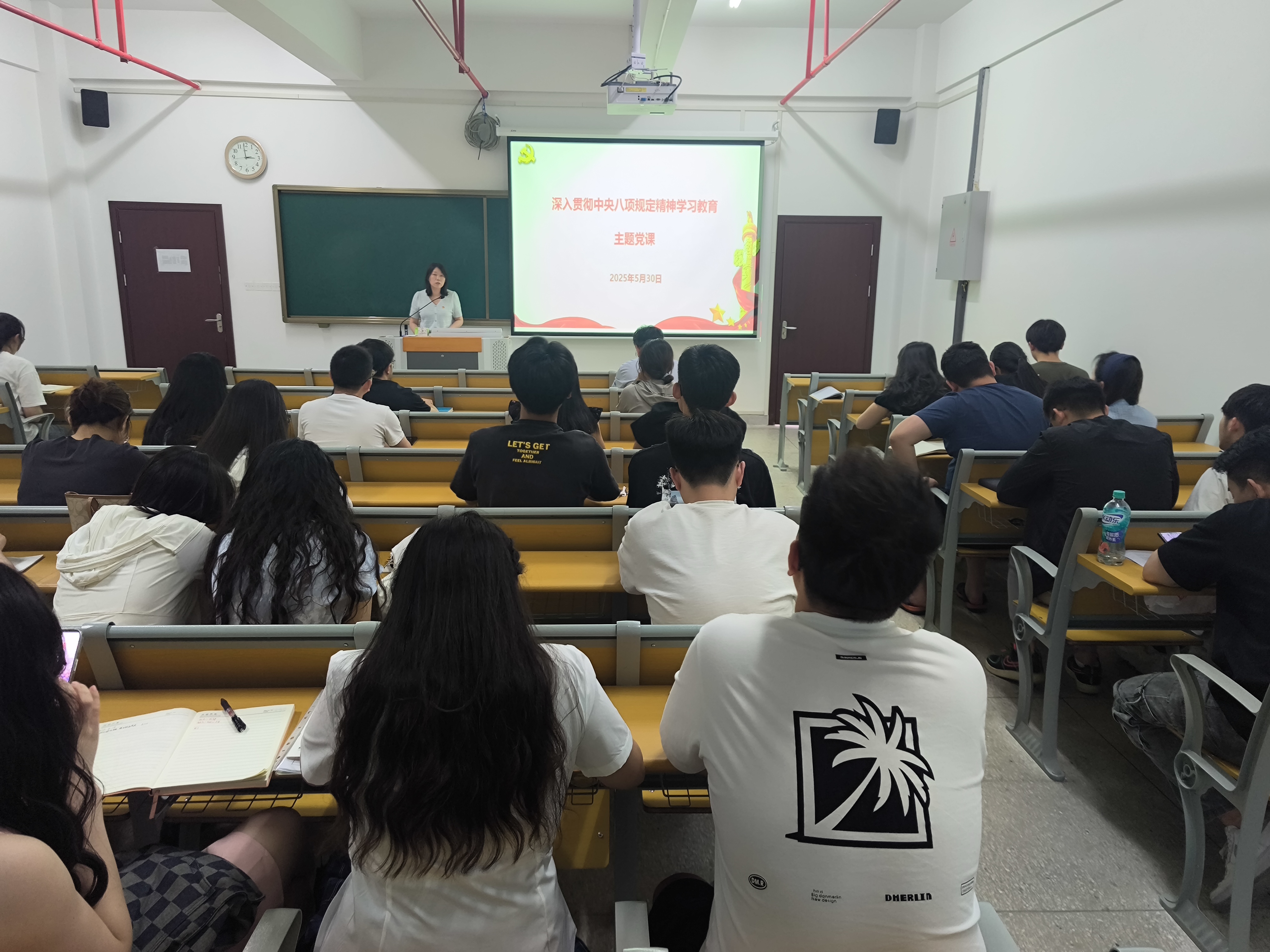 会上,支部书记王丹丹通过主题党课的形式,从“为什么当前要开展深入贯彻中央八项规定精神学习教育”“中央八项规定精神主要体现在哪些方面”介绍了深入贯彻中央八项规定精神学习教育的意义和主要内容,并结合学生实际,详细阐述了学生党员如何落实中央八项规定精神。