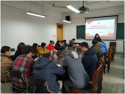 3月12日下午,环境专业教工党支部在学院行政楼三楼会议室召开2020年度组织生活会暨民主评议党员大会。会议由支部书记袁自娇主持。