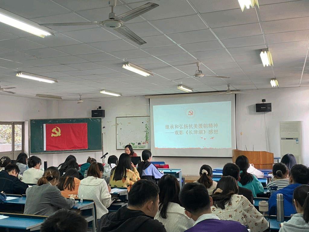 本网讯(生环学院袁成)10月31日,学院党委秘书卫正梅为分党校第二期党员教育培训班学员作题为《继承和弘扬抗美援朝精神—观影长津湖感想》的党课,培训班班主任袁成和培训班学员参加了学习。