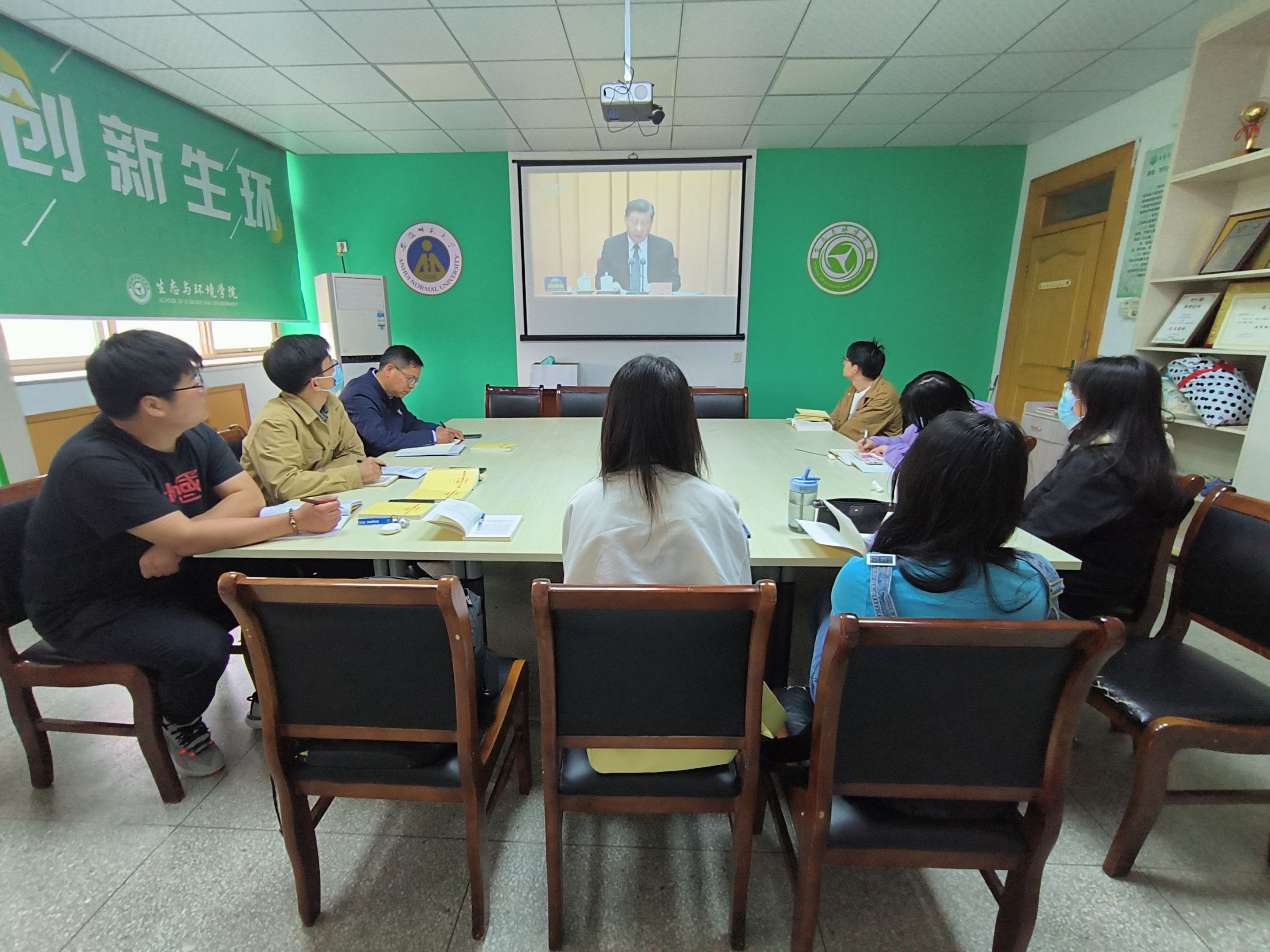 会上,与会党员集中观看了习近平总书记在学习贯彻习近平新时代中国特色社会主义思想主题教育工作会议的讲话视频,学习了主题教育的重大意义和目标要求等。袁成领学了党的二十大报告中生态文明建设相关内容,解读了学校基层党支部开展主题教育工作方案;宣传委员王梓领学了《习近平新时代中国特色社会主义思想学习纲要》中关于生态文明建设等篇章内容。