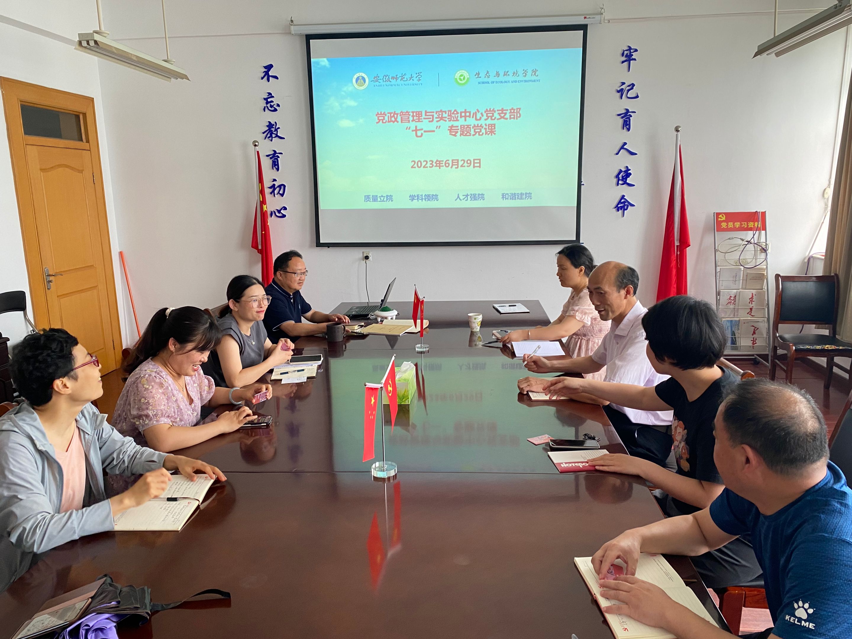 6月29日下午,党政管理与实验中心党支部在学院行政楼四楼会议室召开支部大会,深入学习贯彻习近平新时代中国特色社会主义思想,布置落实学校、学院暑期工作安排。联系支部的党员领导干部甘为民副院长围绕主题教育的目标要求,结合工作实际,为支部党员讲授了题为《深入理解中国式现代化》的专题党课。