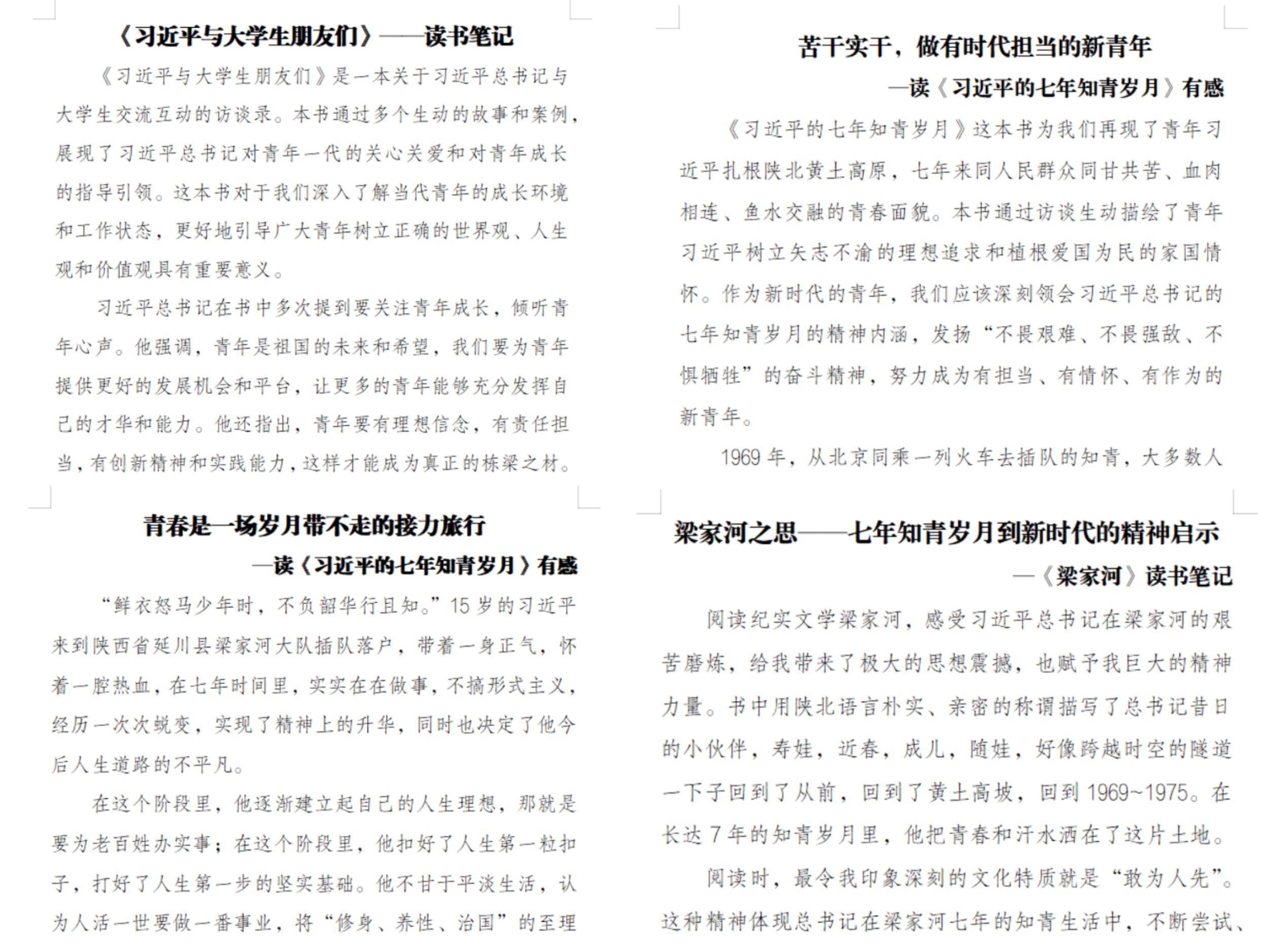 青春共读,筑牢理想信念。各班级团支部开展学习党的二十大精神线上主题团日活动,开展学习研讨,分享学习《习近平与大学生朋友们》、《习近平的七年知青岁月》等书籍的心得体会。在红色基地感受党取得的丰功伟绩,掀起学习党的二十大精神的热潮。