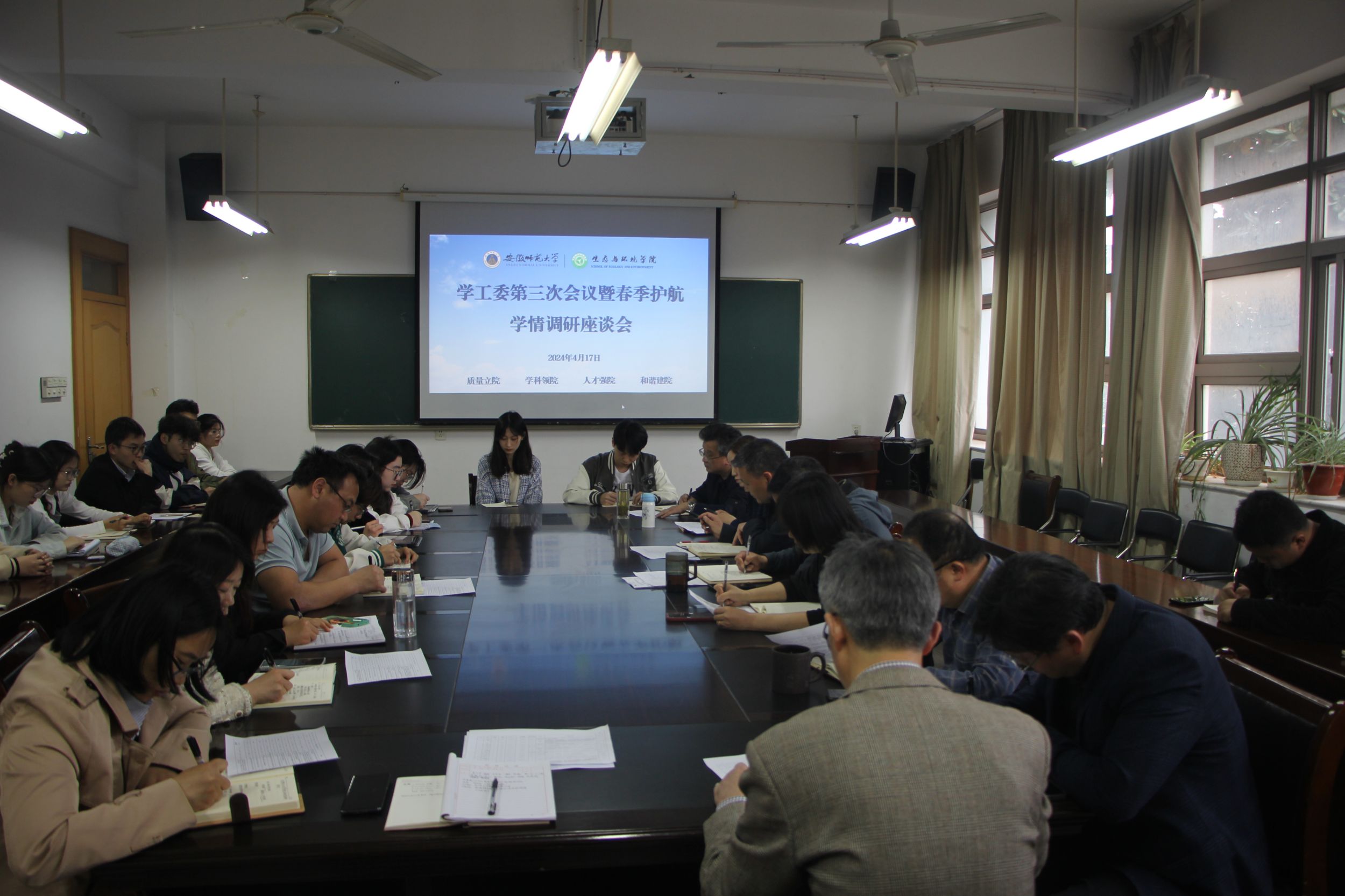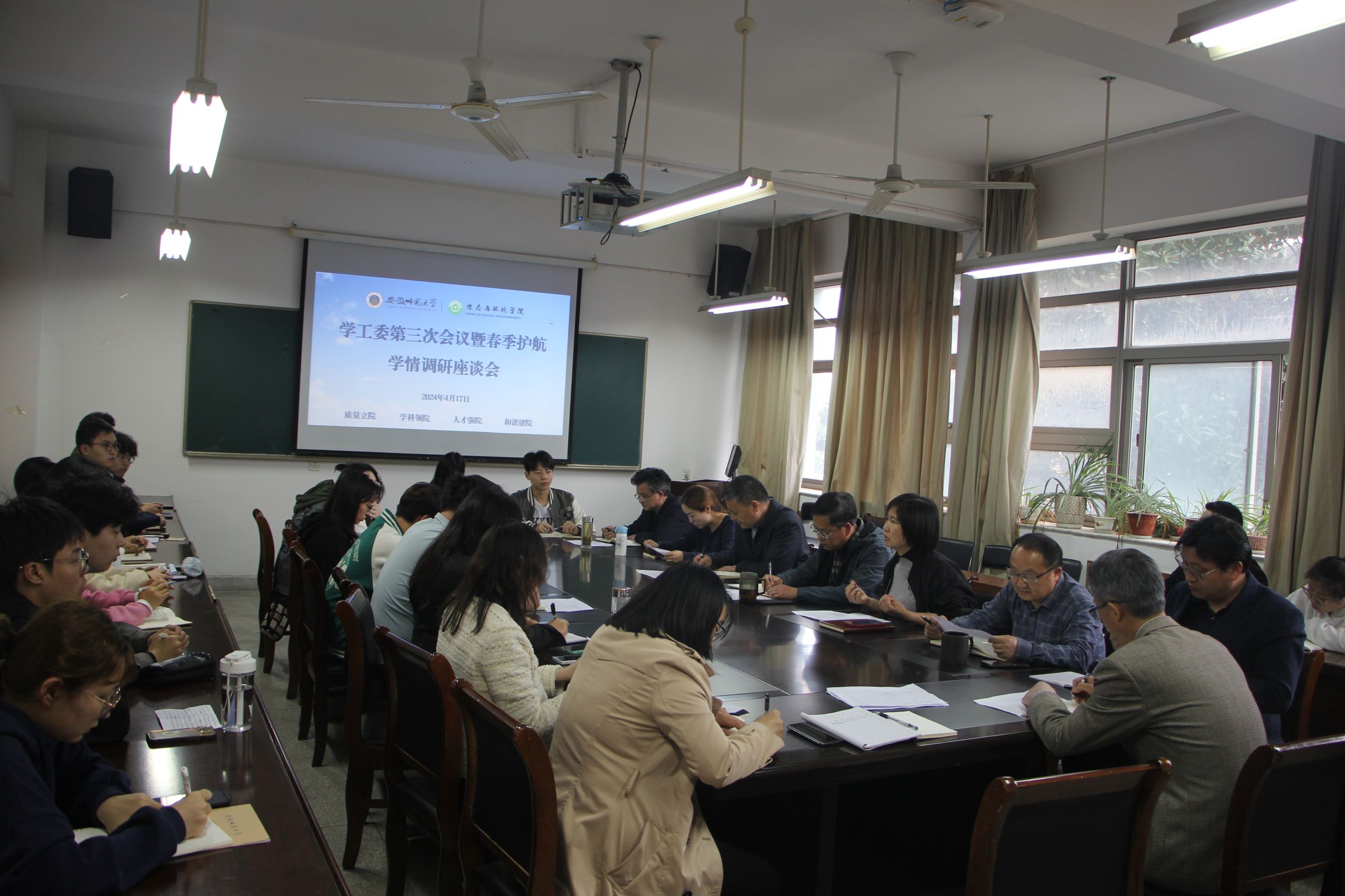 为进一步深化“三全育人”,强化“五育并举”,推进大学生护航行动计划,4月17日下午,学院在行政楼三楼会议室召开学工委第三次会议暨春季护航学情调研座谈会。学院领导班子成员,各学位点负责人、专业负责人和学工委委员、班级学生代表参加会议。会议由院党委副书记杨友谊主持。