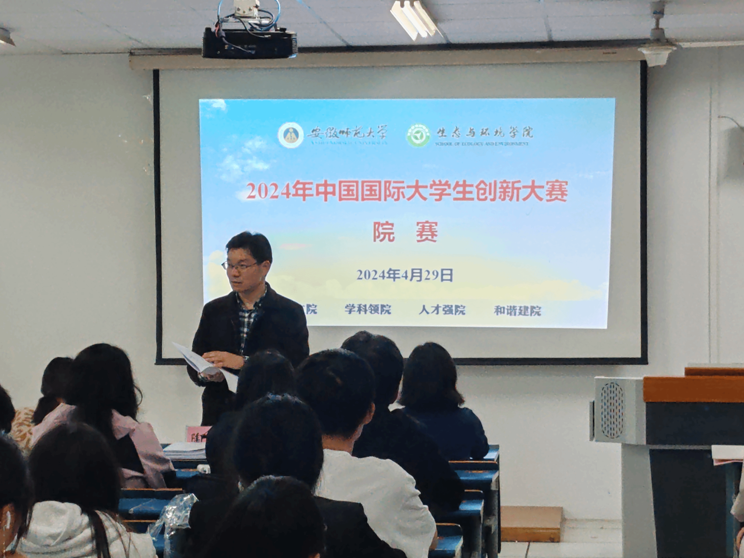 4月29日,学院在实验楼201室举办了中国国际大学生创新大赛(2024)院选赛。金沙城js9线路检测中心教师陶海升、洪培、范支柬、马舒坦、袁成受邀作为本次比赛的评审专家,11支参赛队伍和2023级学生参加本次比赛。