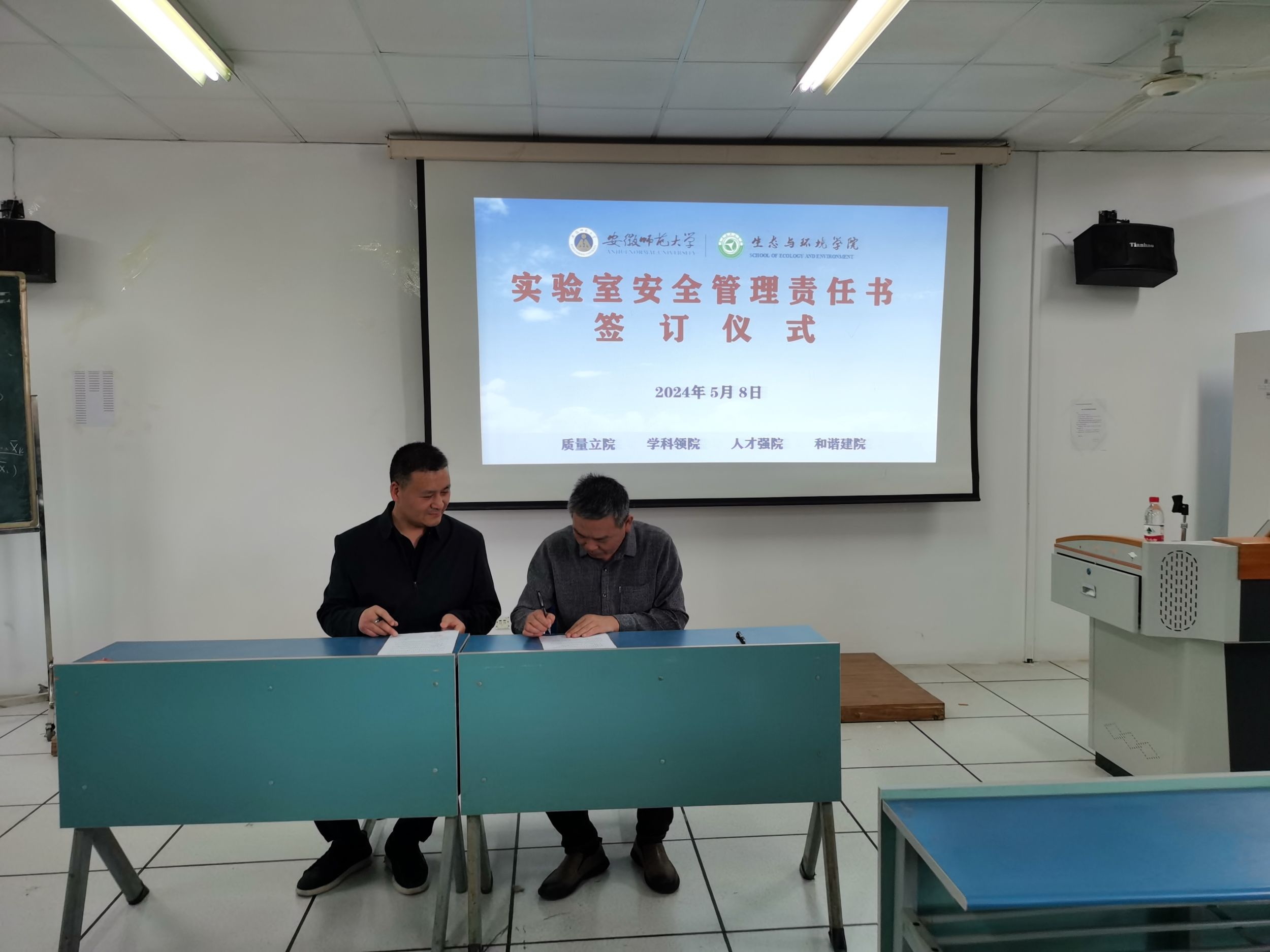 院长胡好远代表学院和各实验室安全责任人现场签订实验室安全管理责任书。