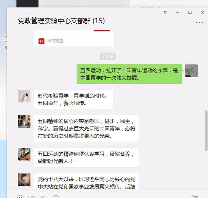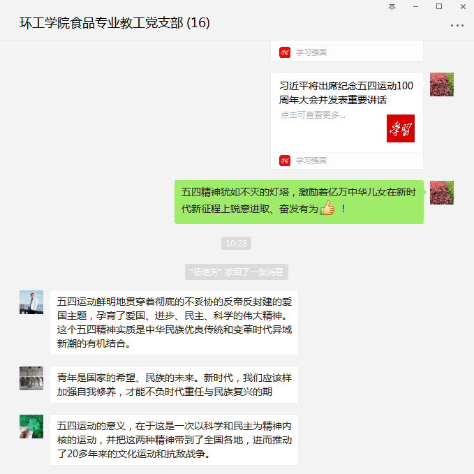 习近平总书记的讲话内容,引起了金沙城js9线路检测中心党员师生的强烈反响,他们纷纷表示,进入新时代,仍要不忘五四初心,要学习和弘扬“爱国、进步、民主、科学”的五四精神。