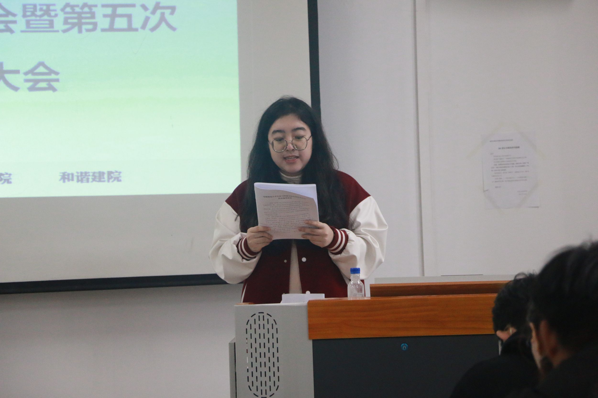 随后,陈奥和于佳明分别代表第四届学生会和第四届研究生会作工作报告,报告全面回顾和总结了院学生会、研究生会在过去一年的工作,并对后续工作提出了建议,做出了展望。