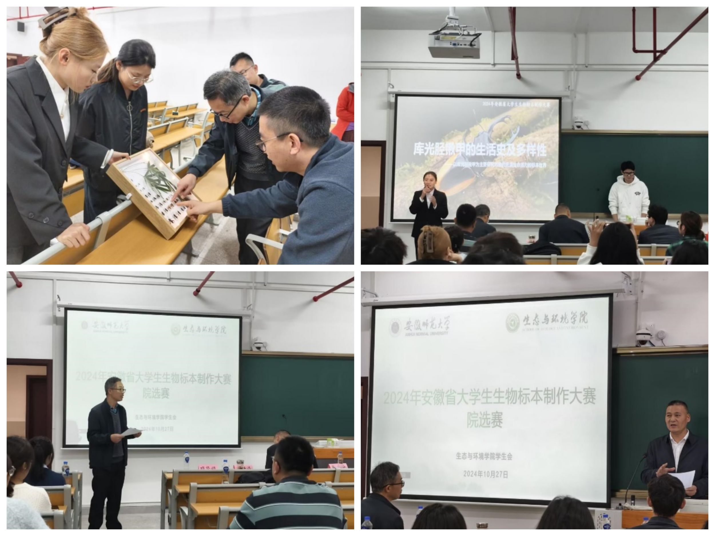 为提升学生科学素养,培养动手实践、创新能力和合作精神。10月27日上午,学院在清源楼C208教室举办2024年安徽省大学生生物标本大赛院选赛。学院院长胡好远、项贤领老师、王影老师、戴志华老师担任评委,学院党委书记张伟莅临现场指导。