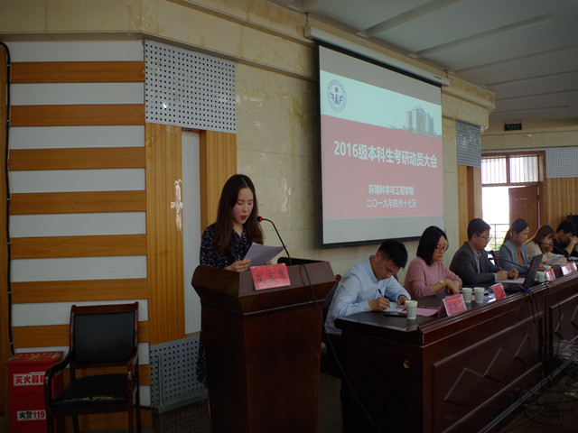 会上,2016级辅导员童华卿以图文并茂的形式介绍近六年学院考研情况。王峰作考研动员讲话。王书记用鲜活的事例和在座的同学分析了考研的“三个需要”,即优质就业所需、提升综合素养所需、强化专业技能所需。王书记表示学院将做好考研服务工作,希望全体同学坚定信念,全力以赴,考取理想的院校,为学院学校争光添彩。2015级环境科学专业徐艳艳和2015级食品质量与安全专业徐珍同学在动员大会上为2016级学生“传经送宝”。两位学姐通过自己的考研经历勉励2016级同学要“不忘初心,有梦去追”,同时也将自己如何劳逸结合、高效学习的经验传授给同学们。2016级食品科学与工程专业陈梦微也代表2020届考研学子表决心,大家将会以不骄不躁的心态,坚定如磐的信念,为梦想全力以赴。