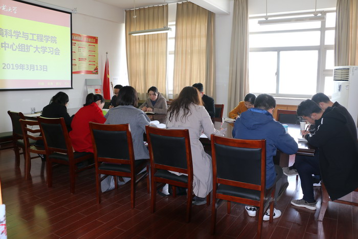 本网讯(环工学院 党委) 3月13日下午,环境科学与工程金沙城js9线路检测中心召开中心组扩大学习会,集中学习《中共中央关于加强党的政治建设的意见》等文件精神,布置新学期党建重点工作任务。学院领导班子成员、党委委员、各党支部书记参加了学习会。会议由学院党委书记王峰主持。