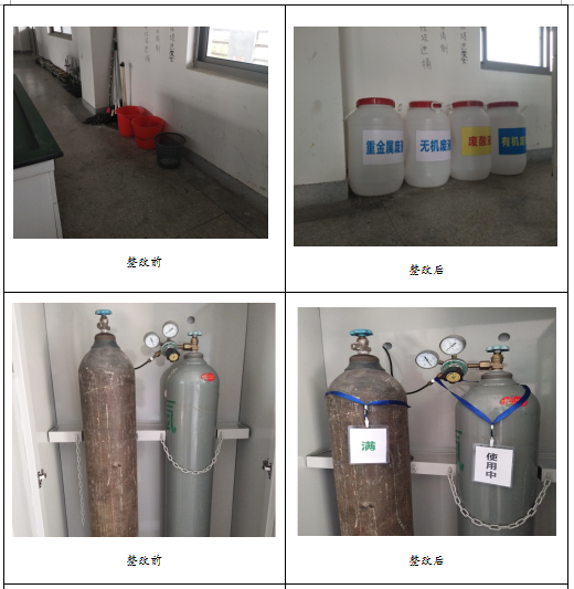 根据现场问题,金沙城js9线路检测中心召开相关会议,布置落实整改方案和责任人,全力整改存在的安全隐患。目前已落实整改项目包括梳理和建立危化品安全台账,危化品实行双人管理,添置防腐试剂柜;安装钢气瓶防倒链,制作悬挂气瓶状态牌150个(不同颜色、分别标注:满、使用中、空、报废);购买实验室废弃物分类容器60个(分别标注:有机、无机、重金属、废酸);全部更换了实验室粉化破损的风扇调速器;实验楼所有走廊、楼梯口张贴紧急逃生疏散路线图。