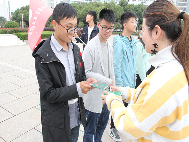 (本网讯/环工学院)秋风送爽,丹桂飘香。在收获的季节里,为加强团员意识,增强团支部集体凝聚力,学院在10月21日下午于敬文图书馆东广场举办了新生团员“三证颁发”仪式。2018级辅导员王雅琴、蒋亚飞老师与各专业团支部代表,参加了此次仪式。