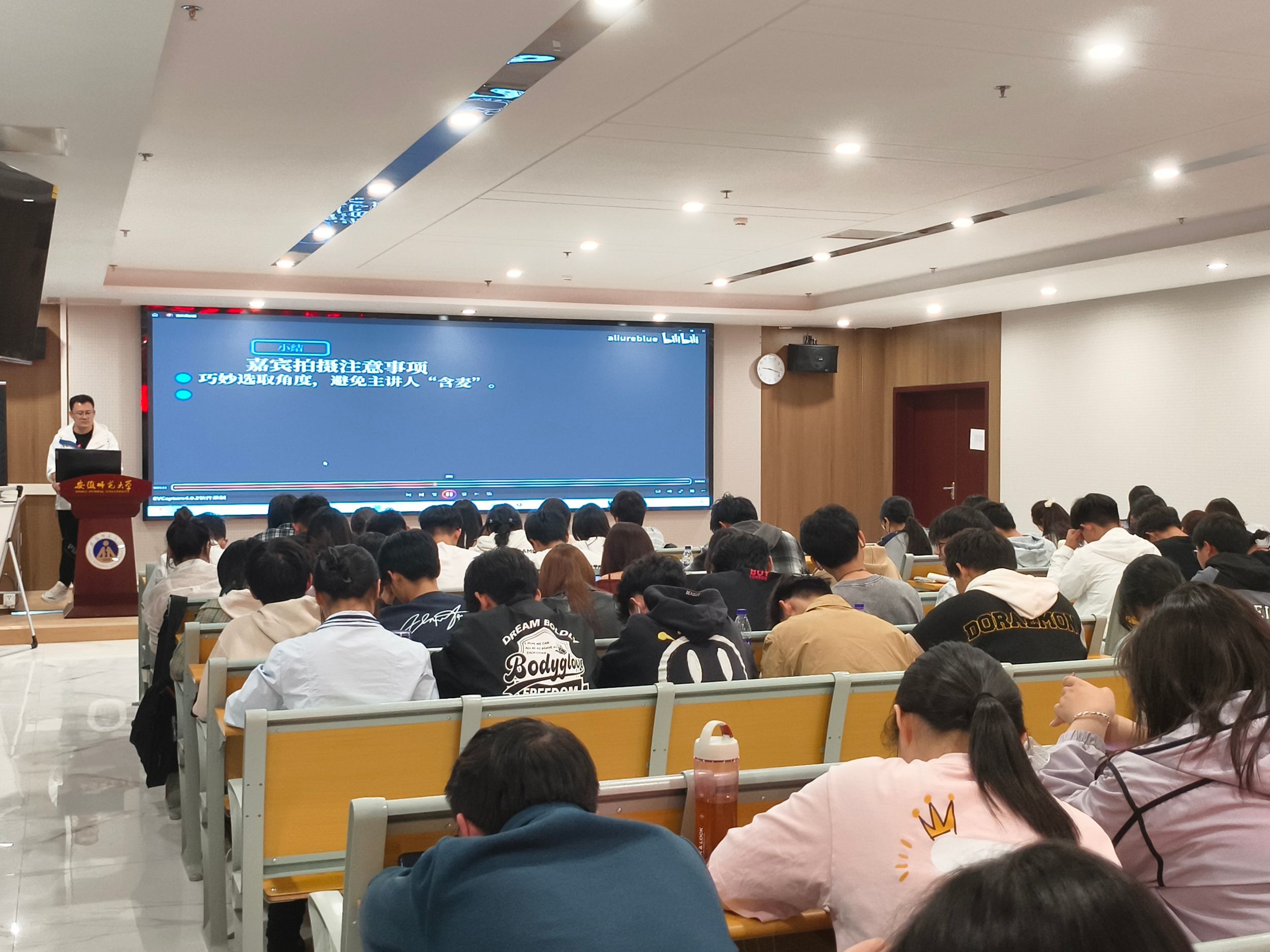 最后,屈亚舒老师围绕摄影技能,讲解了拍摄的注意事项,并从会场、嘉宾、观众三个角度对会议拍摄进行总结,同时结合学院各项活动的实拍图片进行解析,分析“好照片”好在哪里,“坏照片”坏在哪里,以及如何解决,并鼓励同学们要多拍、敢拍,勤加练习。