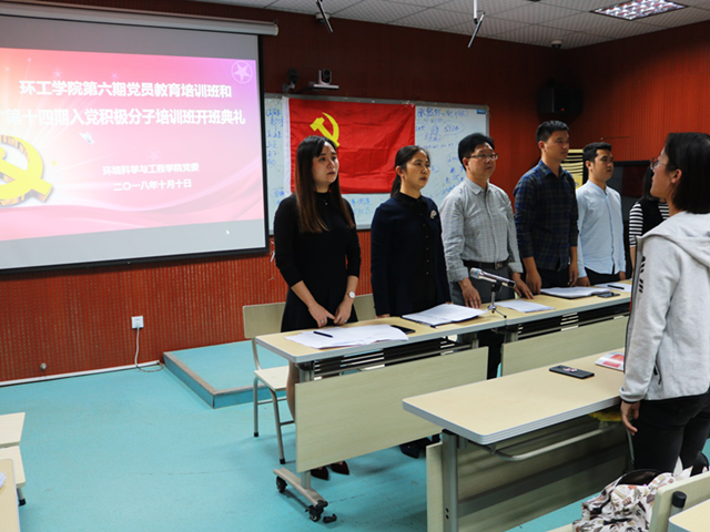 开班典礼在庄严的国歌声中拉开帷幕。首先,党员教育培训班班主任陈亚力和入党积极分子培训班班主任郑合庆分别宣读了《关于举办安徽师范大学环境科学与工程学院第6期党员教育培训班的通知、《关于举办安徽师范大学环境科学与工程学院第14期入党积极分子培训班的通知》和各培训班班委名单,介绍了本次培训班的招生范围、学习内容和纪律要求等内容。接下来,第6期党员教育培训班学员代表16级环境科学专业张雯、第14期入党积极分子培训班学员代表17级食品科学与工程专业章升霞发言,他们代表全体培训班学员感谢学院提供了难得的学习机会,并向党组织郑重承诺:将以最饱满的热情,最全面的投入,最实际的行动来完成此次党课学习,坚决做到认真学习,严于律己。