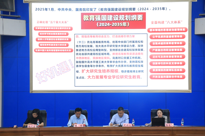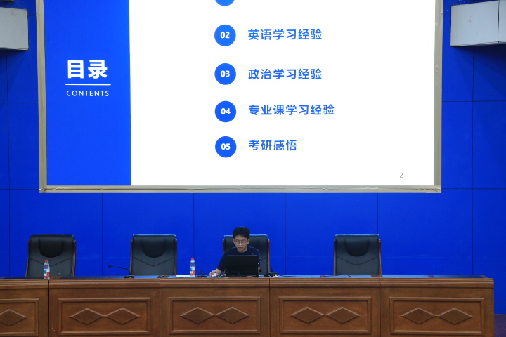 会上,昝逢宇介绍学院研究生招生学科专业、科研平台、学科师资力量以及各学科报考情况,鼓励同学们抓住机遇,做好科学规划,根据自身情况选择报考学校。胡好远对当前考研大背景进行了剖析,分析学生考研的动机,强调目标导向的重要性,收集资料的关键作用,鼓励同学们采用团队协作模式,合理安排时间,全身心投入学习,为考研成功上岸不懈努力。张伟在讲话中从学校的“三大行动计划”谈起,明确高校首要职能是人才培养,学院将全方位为学生的考研与就业之路保驾护航,全力促进每个学生更好地成长成才。他强调考研是长期的、坚持的、艰辛的历程,鼓励同学们做到科学考研、全力考研、快乐考研,调整好心态,在学习中提升理论知识和专业技能水平。