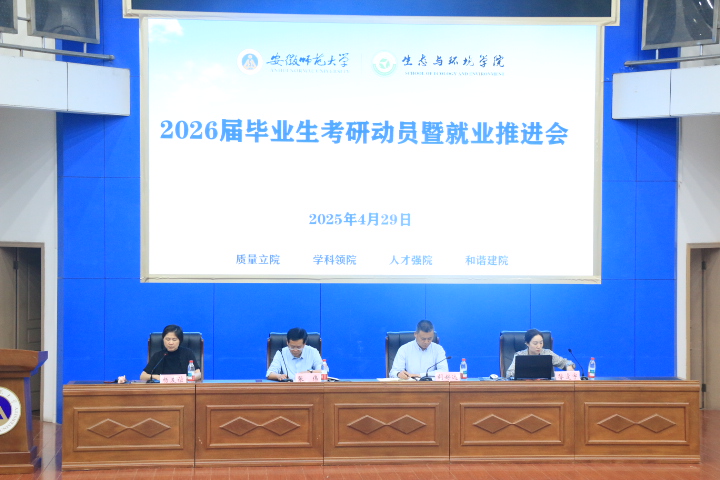 为落实大学生护航行动计划,助力2026届学生提前谋划未来,明晰考研与就业方向,4月29日,学院在敬文图书馆报告厅举办2026届本科毕业生考研动员暨就业推进会。学院党委书记张伟、院长胡好远、党委副书记杨友谊、副院长昝逢宇、辅导员郑合庆、袁成、2025届考研学生代表、2022级本科生全员参与,会议由杨友谊主持。