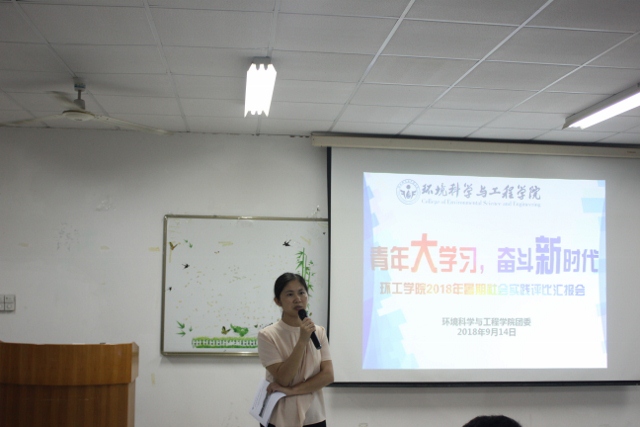 最后,学院党委副书记杨友谊对本次汇报会进行了总结,她认为今年的暑期实践活动广大同学准备充分、组织有序,充分发挥了“四自”功能,在实践中紧密结合专业,磨练了艰苦奋斗的品质,充分展现了环工学子敢于创新、敢于担当的青春风采。