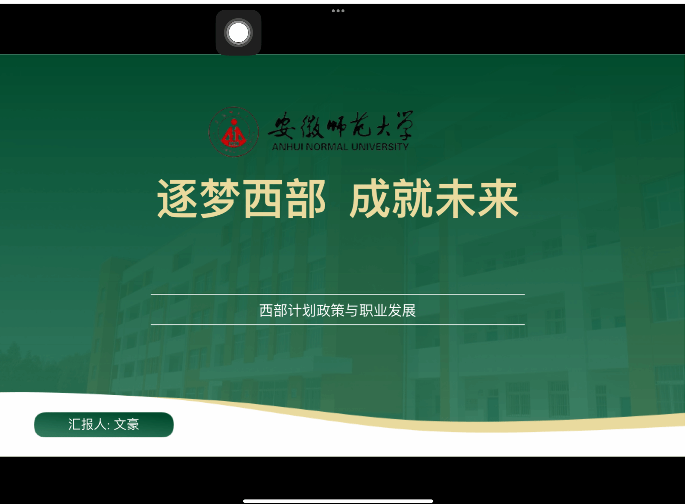 2024届优秀校友文豪以"筑梦西部,成就未来"为主题,主要介绍了西部计划的具体实施背景、招录策略的选拔标准、服务期及国家和地方财政补贴、相关优惠政策等内容。文豪还分享了自己的工作经历,建议同学们积极响应国家号召,投身基层,建设美丽西部!
