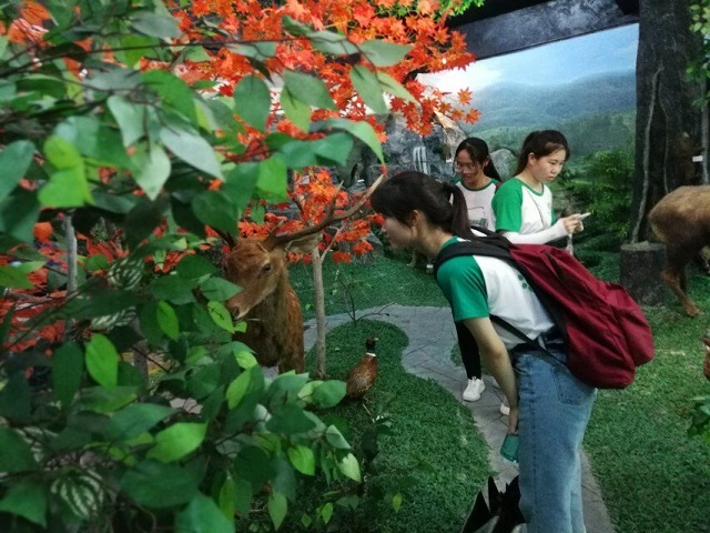 “大家把动物标本植物标本拍下来,回去我们好好查查资料,了解他们,通过这里的生物图标,继续生物多样性的整理。”队长仇欣然认真观赏记录的同时不忘向队员叮嘱。