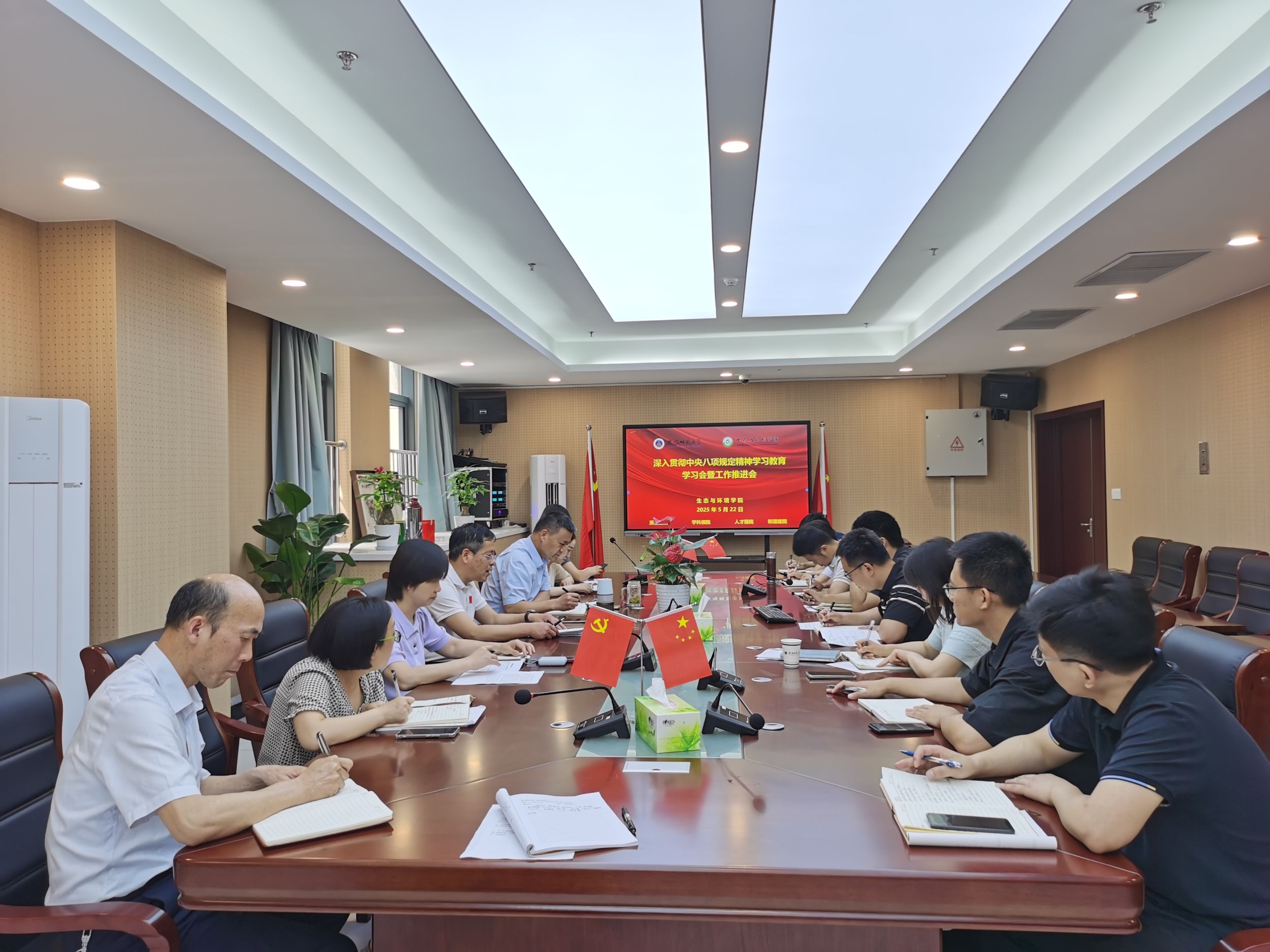 与会人员以观看视频的方式学习了《习近平在河南考察时强调 坚定信心推动高质量发展高效能治理 奋力谱写中原大地推进中国式现代化新篇章 》《八项规定改变中国④以作风建设新成效赢得人民群众衷心拥护》,张伟领学了习近平总书记的重要文章《锲而不舍落实中央八项规定精神,以优良党风引领社风民风》和《党的十八大以来深入贯彻中央八项规定精神的成效和经验》,院长胡好远传达了学校关于深入贯彻中央八项规定精神学习教育的工作提示要求,学院党委副书记、纪委书记杨友谊通报了高校违反八项规定精神的典型案例,副院长昝逢宇围绕“深入贯彻中央八项规定精神,推进学院事业高质量发展”作了研讨发言。