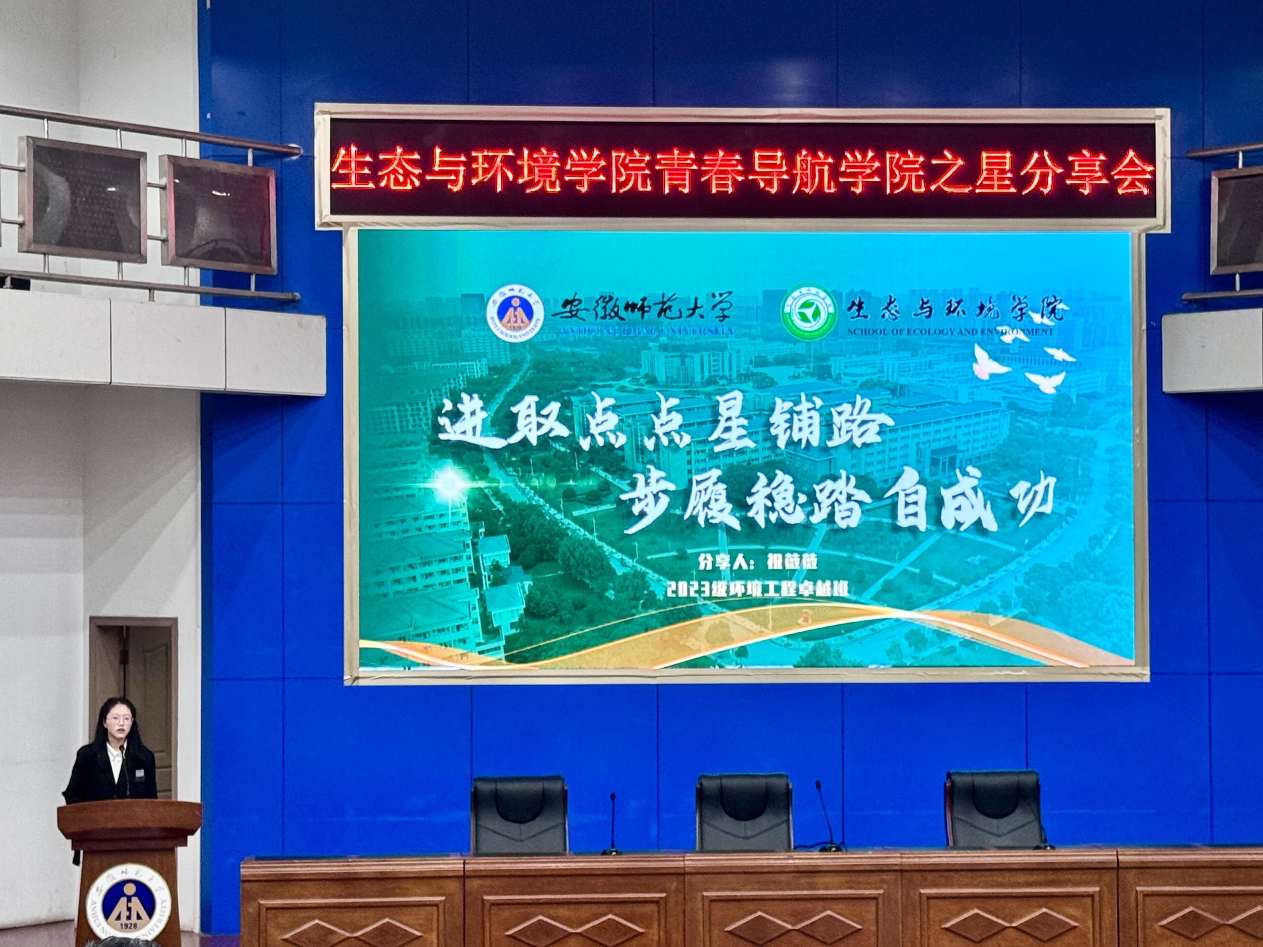 5月15日,学院组织荣获“学院之星”的10位同学分享各自在专业学习、科技创新、文体竞技、志愿服务、自立自强、社会工作等领域的宝贵经历与深刻感悟。同学们用真挚的语言、生动的案例述说了自己充实而多彩的大学生活:有在实验室里攻坚克难、勇攀科研高峰的攀登者;有在志愿服务中传递温暖、践行社会责任的奉献者;有在日常学习中突破自我、追求卓越的奋斗者;有在生活的逆境成长,一路披荆斩棘的自强者……一个个鲜活的成长经历,多角度、立体化地诠释了生环学子的奋进风采与使命担当。