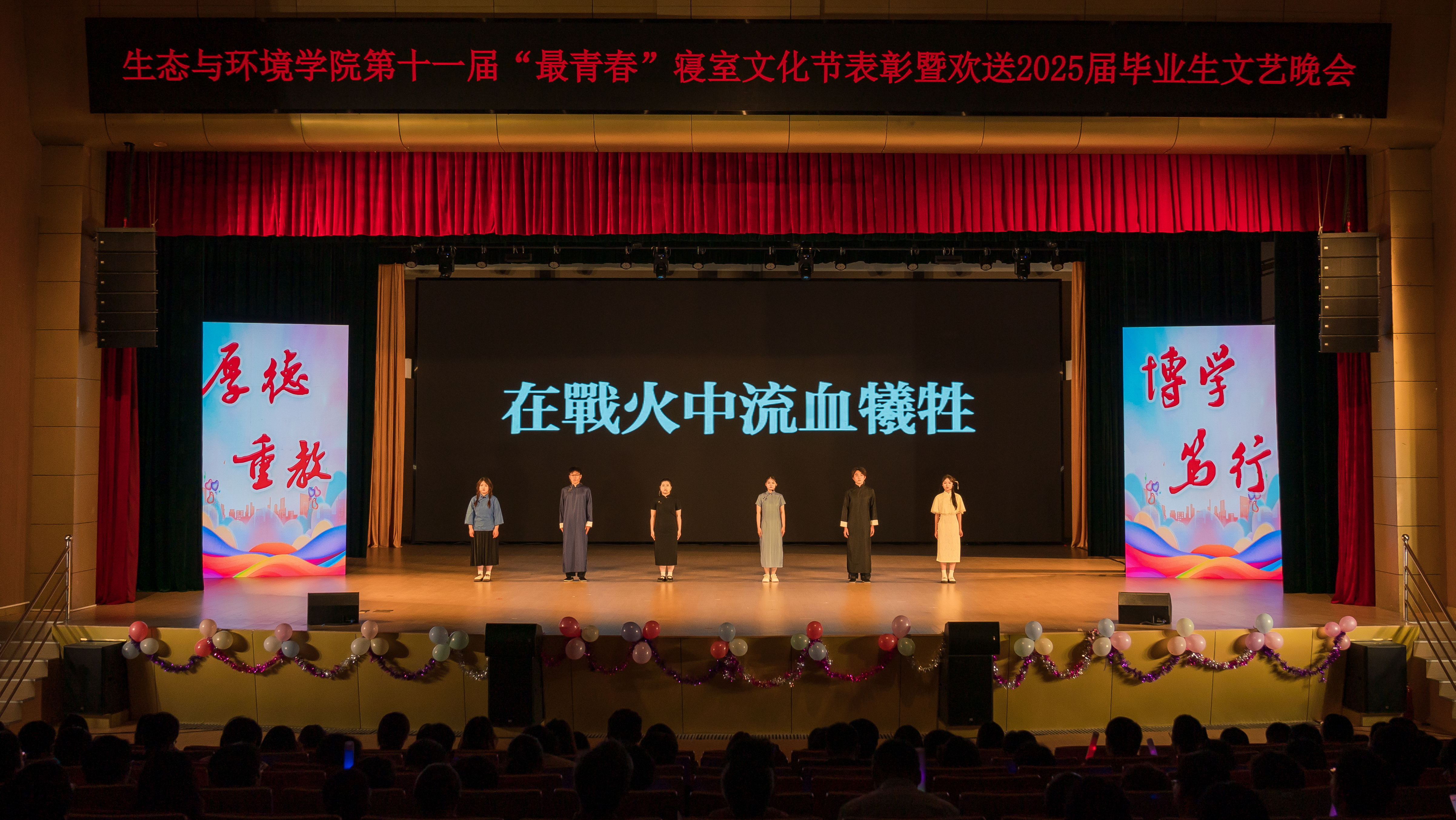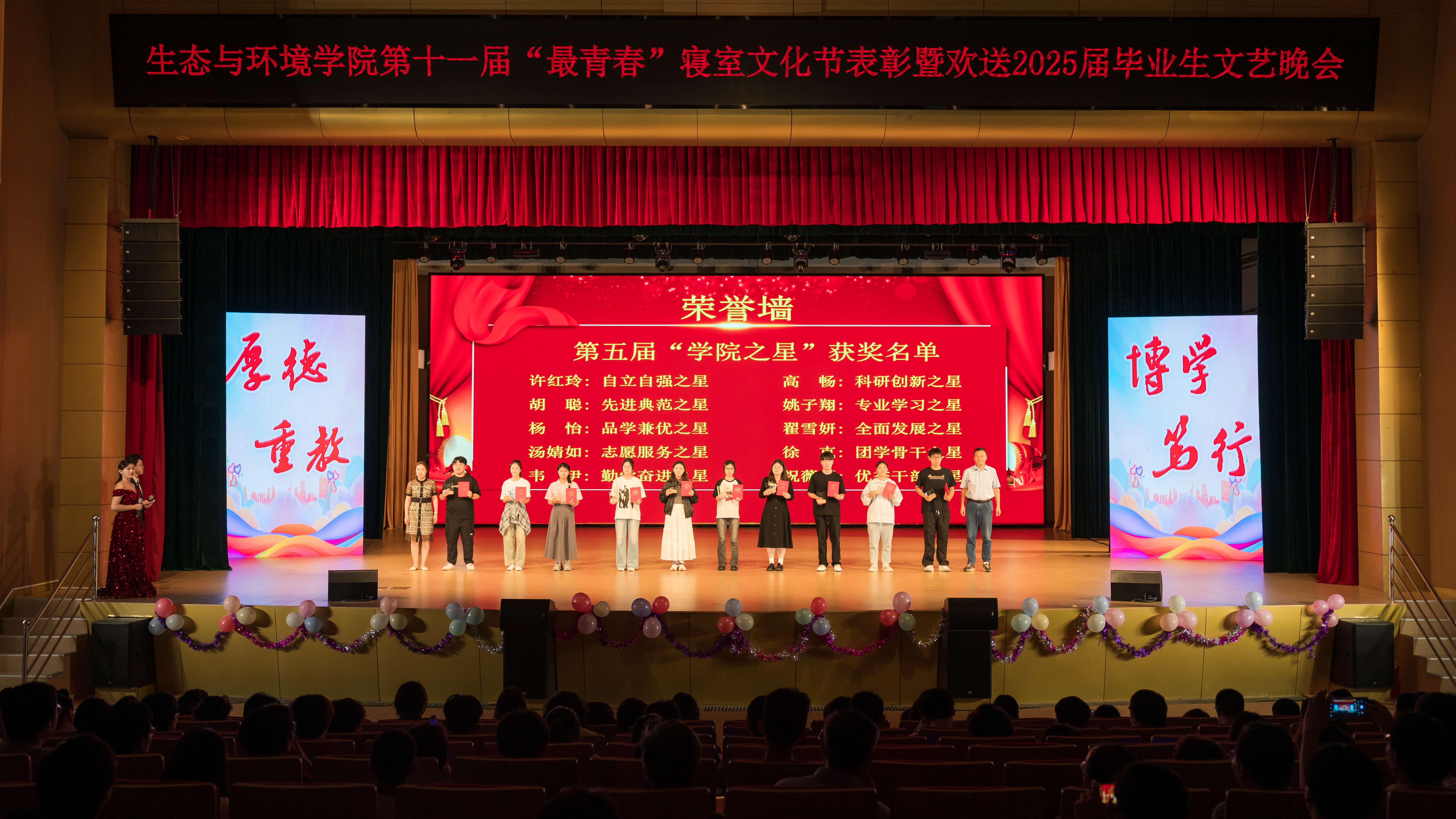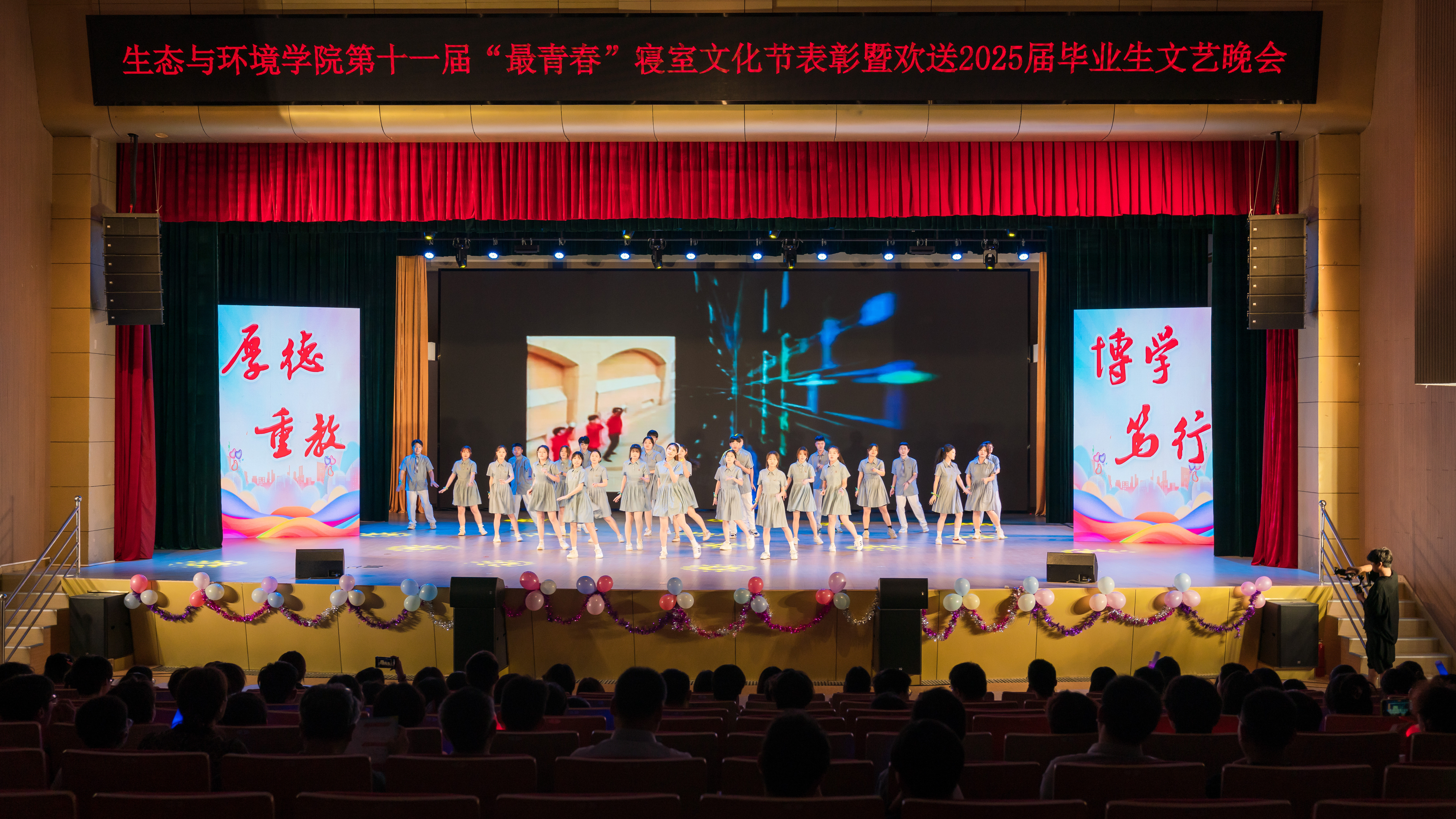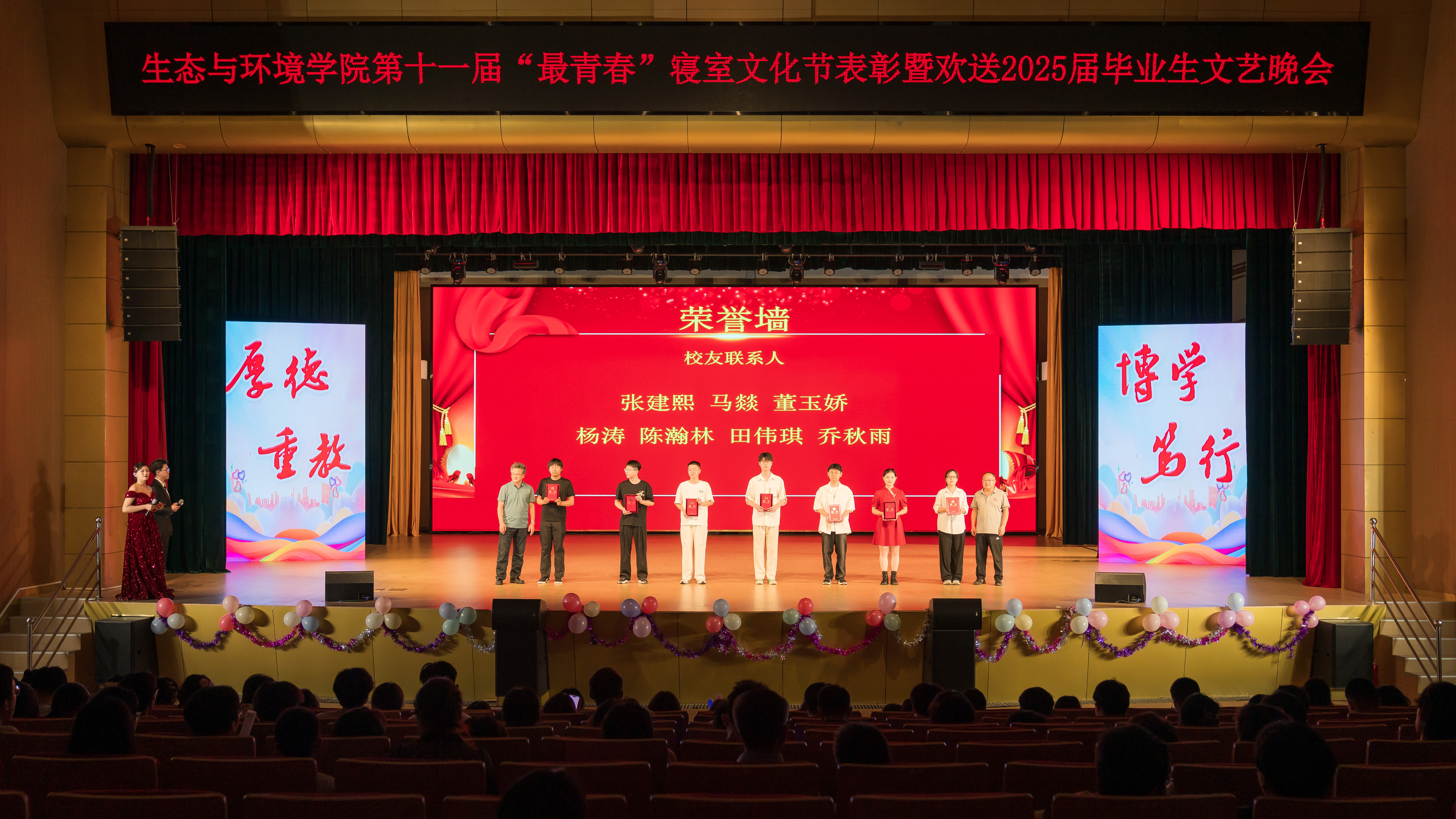 “'生'逢盛世、'环'抱梦想”,为深入推进大学生护航行动,6月7日晚,学院于花津大礼堂隆重举行第十一届“最青春”寝室文化节表彰暨欢送2025届毕业生文艺晚会。安徽建大环境科技有限公司副总经理沈刚,学院领导班子成员、各专业负责人、授课教师和部分本科生、研究生齐聚一堂,共同见证这场青春盛会。