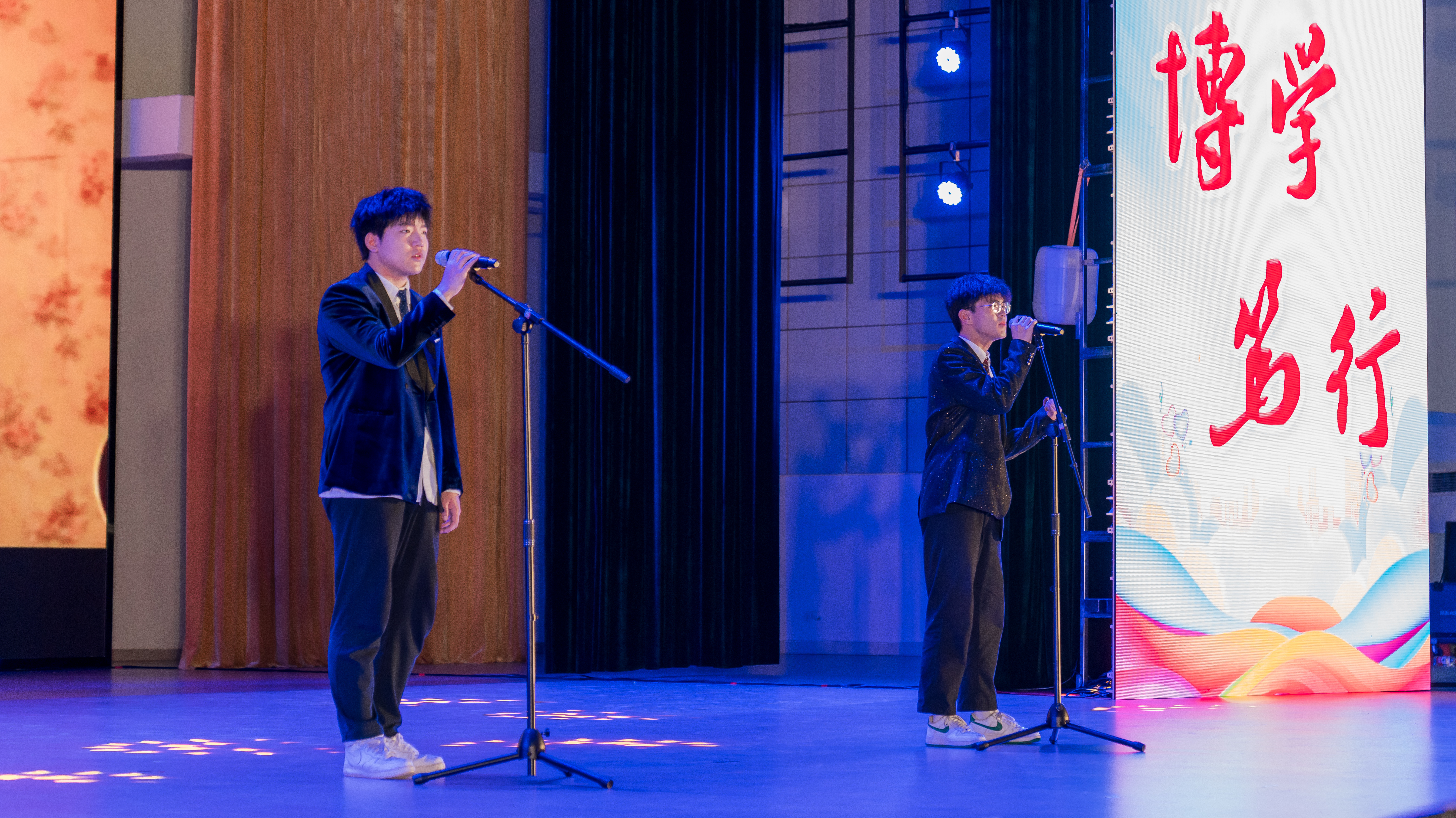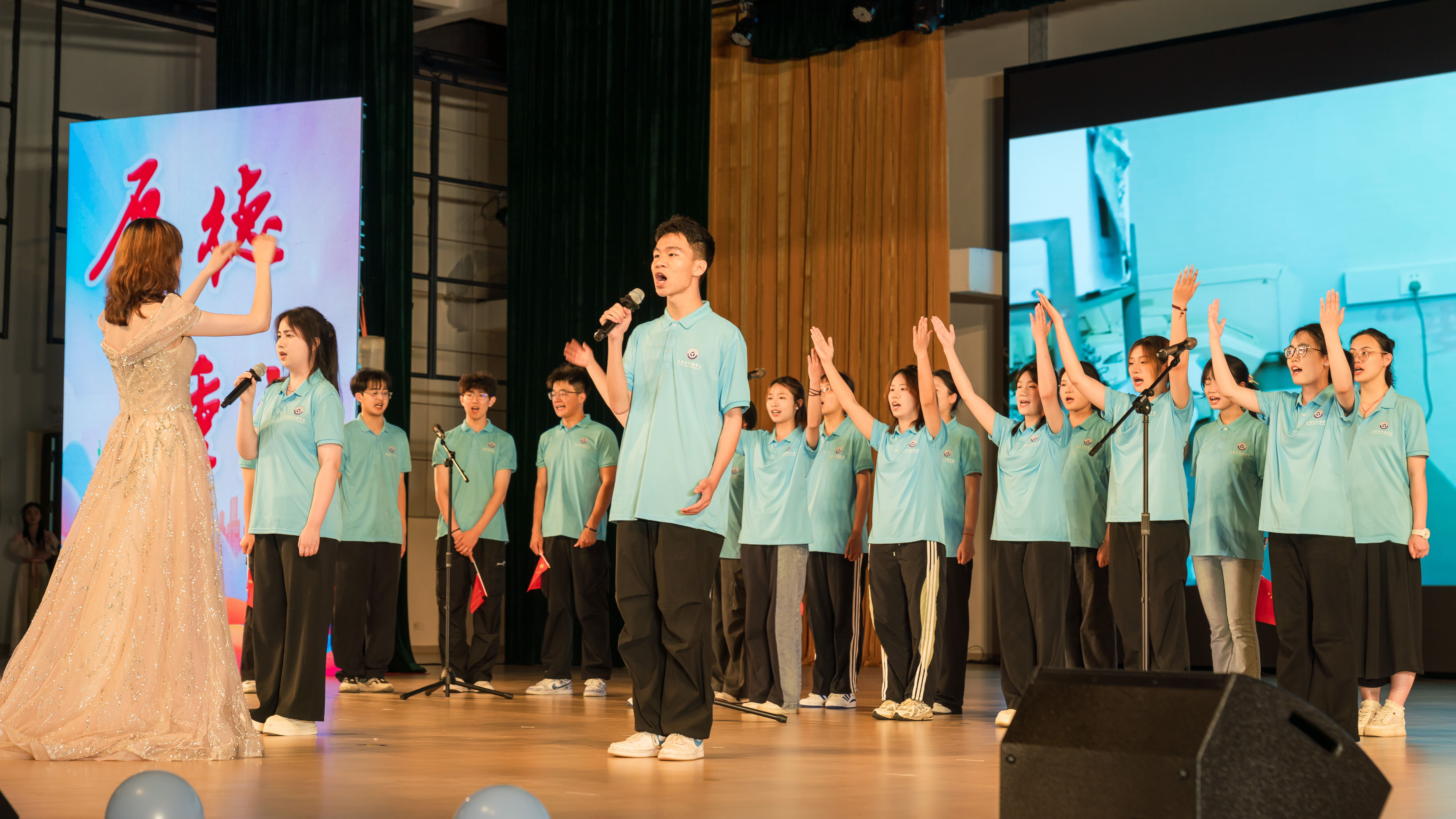 晚会在充满活力的开场舞蹈《青苹果乐园》中拉开序幕,舞者们用灵动的舞步点燃现场气氛;各专业同学带来歌曲串烧,以青春歌声尽情展现活力与风采,赢得现场阵阵掌声;诗歌朗诵《百年沧桑》震撼登场,激昂的声音将现场师生带入了先辈们艰苦卓绝的奋进年代;2024级环境工程1班同学唱响红色歌曲《有我》,高亢有力的旋律彰显出新时代学子昂扬向上的精神风貌。