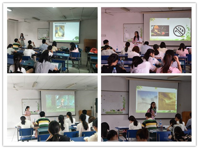 作品重重亮点,成果收获颇丰。通过初赛和复赛,最后有10组作品进入决赛。各个作品集专业性、创新性、趣味性和教育性为一体,“春田花花”队以各类树叶为引,告诉小朋友们要爱护树木;“传播希望”队以白雪公主童话为切入点,强调了保护动物的重要性;“青萌”队以有趣的垃圾分类小游戏为中心,教会了小朋友们简单的垃圾分类方法……精彩的表现赢得了老师和同学们的阵阵掌声。最终经过平时成绩及决赛成绩的综合评定,“春田花花”和“传播希望”两支队伍荣获了一等奖,“环保小天使”等三支队伍荣获二等奖,“美少女战士”等五只队伍荣获了三等奖。