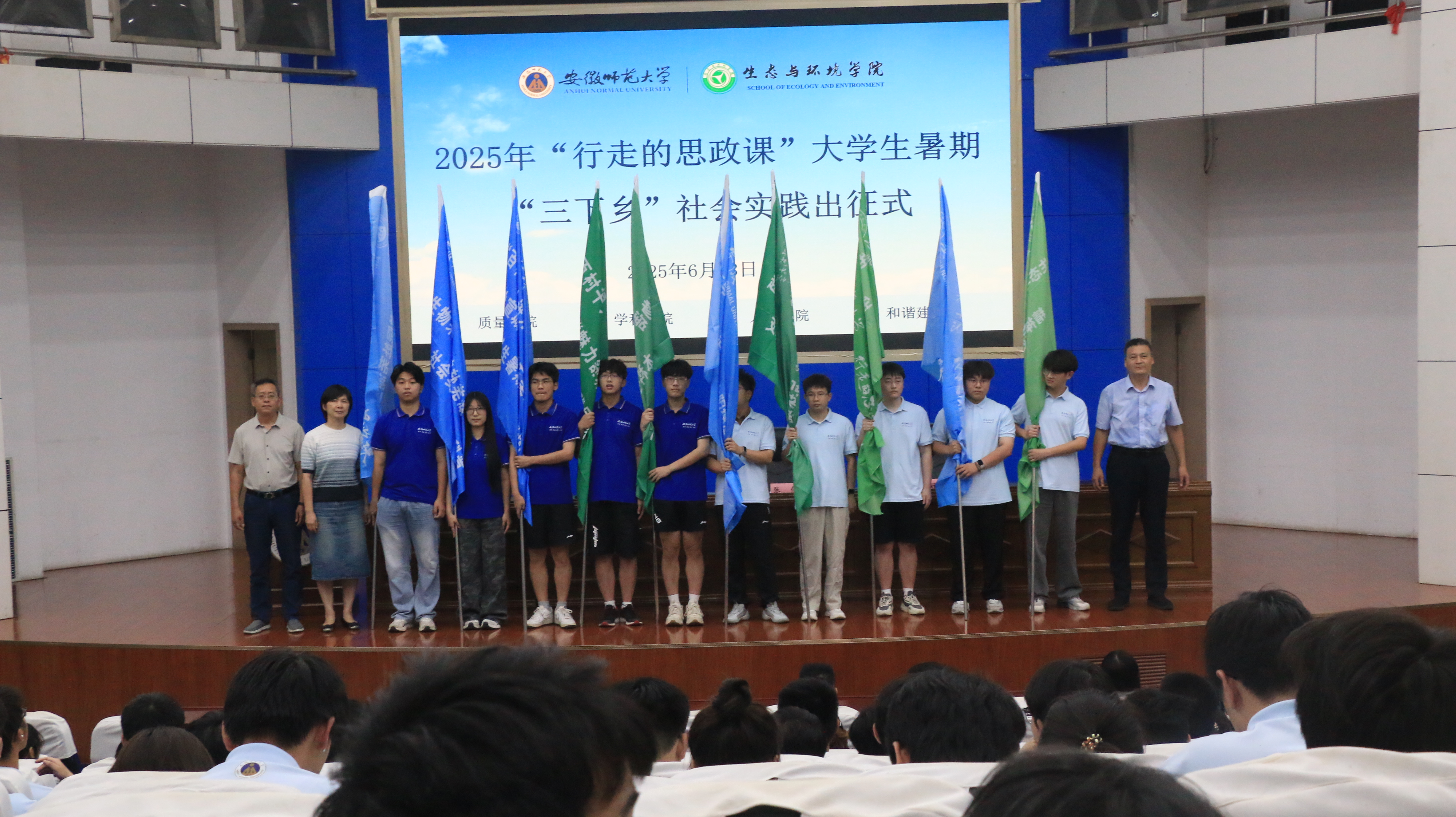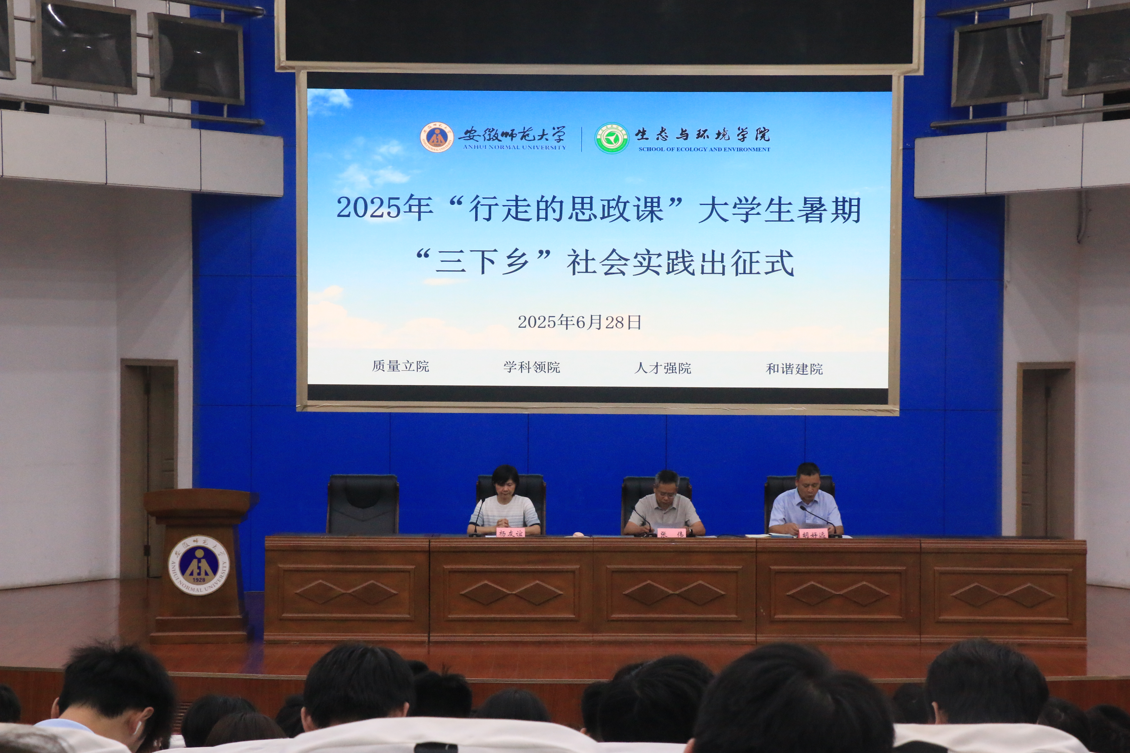 为进一步落实学校“三大行动计划”,推进“大思政课”建设,引领广大青年学生到祖国和人民需要的地方发光发热,为中国式现代化建设贡献青春力量。6月28日下午,学院在敬文图书馆报告厅举行2025年“行走的思政课”大学生暑期“三下乡”社会实践出征式。院党委书记张伟,院长胡好远,党委副书记杨友谊,全体专兼职辅导员和暑期社会实践队员参加了会议。仪式由杨友谊主持。