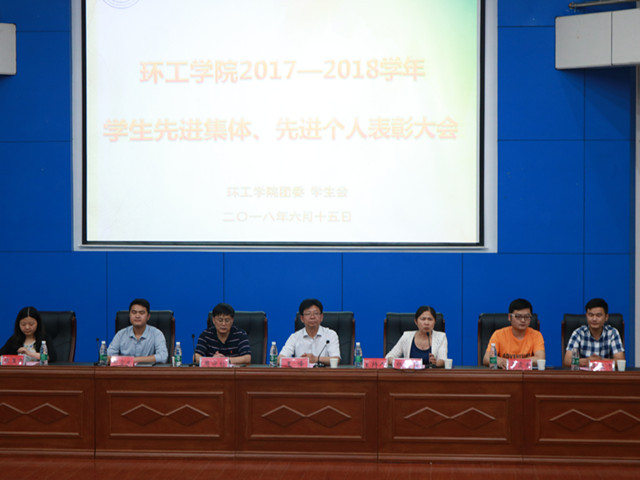 (本讯网 环工学院通讯队)6月15日晚,环工学院在敬文报告厅召开2017—2018学年学生先进集体、先进个人表彰大会。学院党委书记王峰、院长周守标、副书记杨友谊、各年级辅导员出席大会,院第五届“环工之星”、第十五届学生会全体学生干部、“最青春”寝室文化节获奖寝室成员、2017级全体学生参加会议。大会由杨友谊主持。