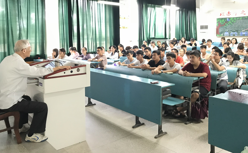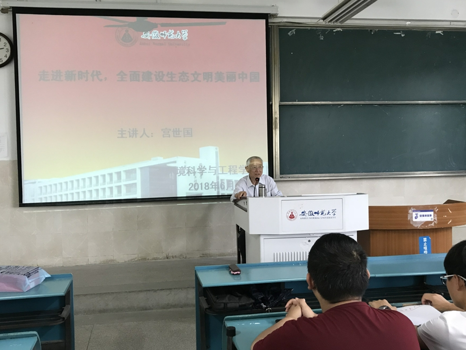 (图/汪俊杰 文/翟雯萱)6月9日下午,校关工委宫世国教授受邀在教学楼2010201教室为环工学院2017级学生作了题为“走进新时代,建设生态文明美丽中国”的专题讲座。讲座由2017级辅导员蒋亚飞主持。