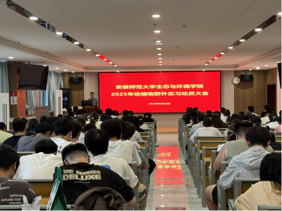 精心筹备,夯实实习基础。本次野外实习由学院统一部署,提前两个月启动准备工作,包括实习物资更新、实习基地遴选、人员安排等。6月初,学院副院长甘为民、严云志等一行实地踏勘实习地生态环境、交通条件及食宿保障,最终延续黟县宏村作为实习基地。温新利、王影、黄羿鑫、赵冰、柳帅、戴志华、李治中、张晨、葛奕豪、姜志永担任实习指导教师,辅导员屈亚舒负责学生管理。6月29日下午,学院在清源楼C307召开实习动员会,会上,严云志介绍了本次野外实习的总体安排、注意事项与管理要求等,强调野外实习是理论联系实际的重要途径;黄羿鑫、戴志华分别就动物学野外实习和植物学野外实习的教学内容作了详细介绍,并从安全、纪律与学习态度三个维度对学生提出了期望;屈亚舒补充了实习结束后的离校安排与暑期安全提醒;学院党委副书记杨友谊作总结讲话,勉励同学们在实践中磨砺本领、拓宽视野。