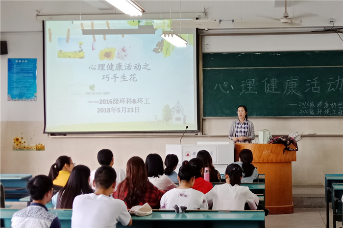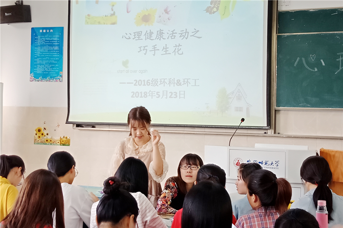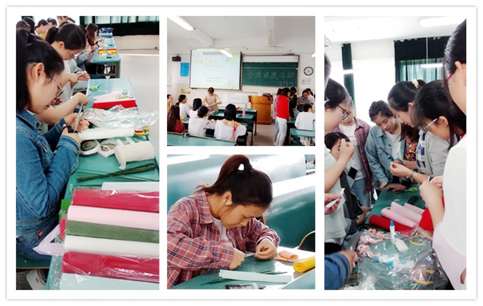 本网讯(环工学院 刘欣悦 金凤仙)为落实学校关于开展2018年“5·25”心理健康月活动的通知,丰富大学生课余生活、引导学生树立积极乐观的心态,5月23日下午,环工学院2016级环境科专业在2010407教室举办手工体验活动,校心理健康教育中心教师、16级环境专业心理辅导员金凤仙老师参与并全程指导。