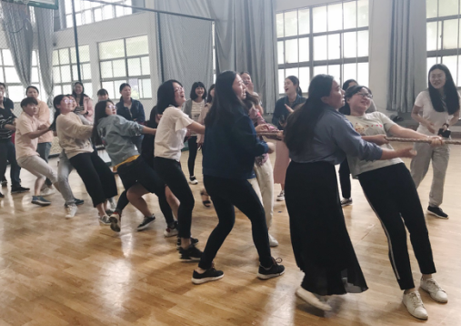 活动中,在两个班级的同学热情高涨,积极参与,现场不时传出欢笑声和助威声。萝卜蹲、仙人指路、装模作样等趣味游戏点燃全场。随后的以班级为单位的拔河比赛更是将现场气氛推向了高潮。最终,联谊活动在两个班级同学的大合影中落幕。