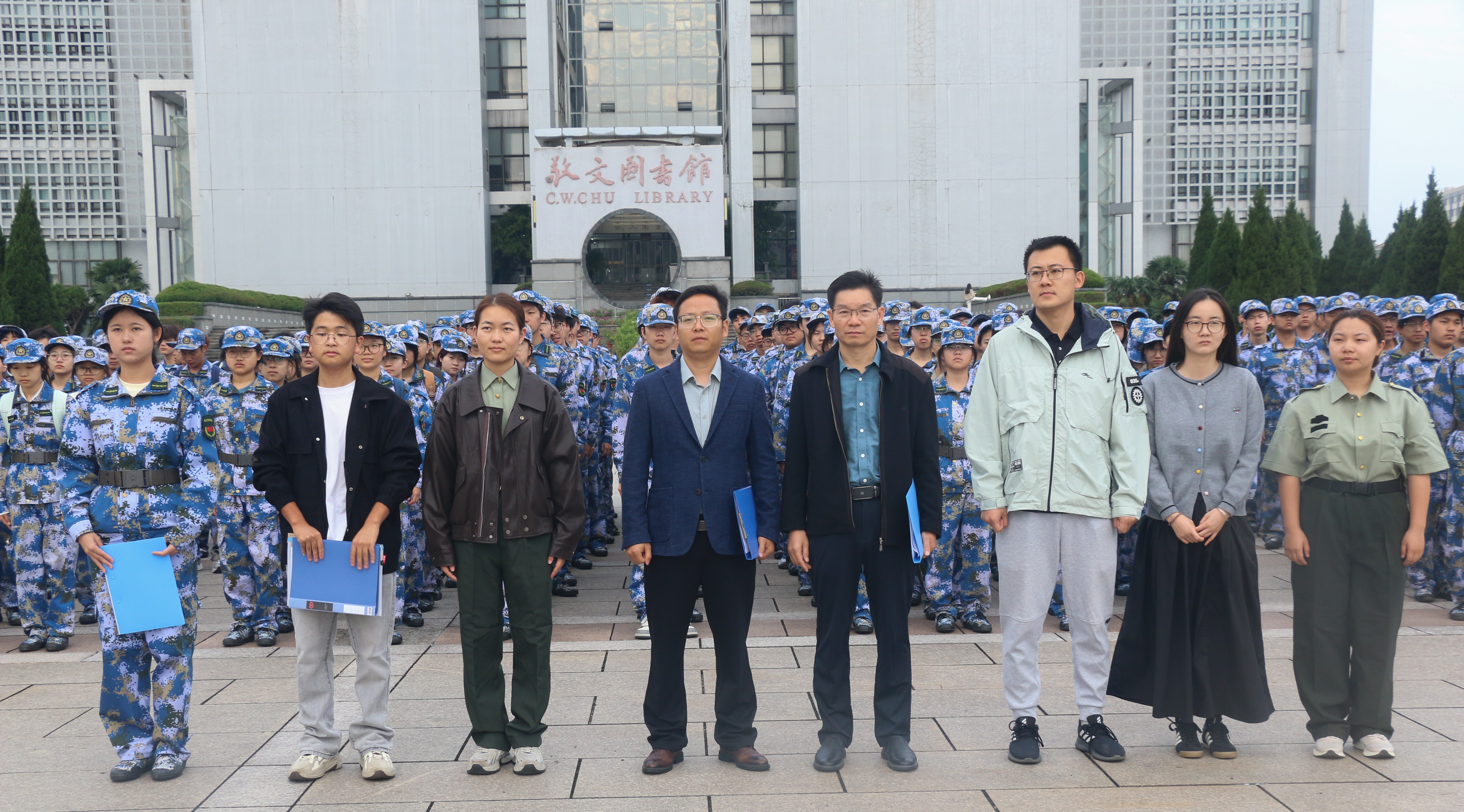 为引导新生厚植家国情怀、勇担绿色使命,10月17日早晨7时,学院在敬文图书馆东广场举行“国旗下的思政课”主题校园升国旗活动。环境检测治理科研团队负责人、博士生导师陶海升教授,学院党委副书记张海兵、团委书记屈亚舒、2025级新生辅导员,2022级生态学拔尖班本科生谢耀飞,全体本科新生共同参加。活动由辅导员刘姣姣老师主持。