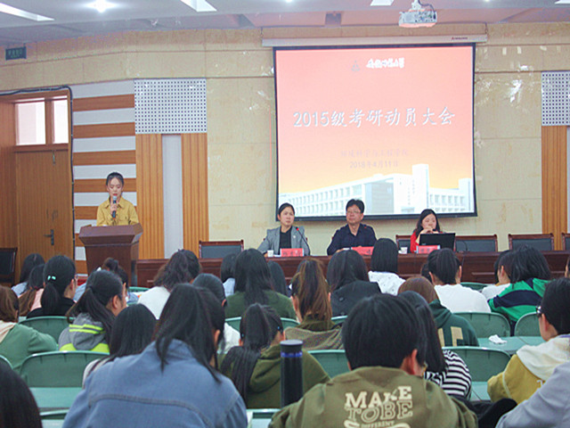 (环工学院 文/孙梦雅 陈亚力 图/贾子婧)4月5日下午,环工学院在财务处二楼报告厅召开了2015级学生考研动员大会。院党委书记王峰、副书记杨友谊、辅导员陈亚力及2015级全体学生参加了会议。会议由杨友谊主持。