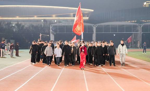 开幕亮相,展示风采。10月29日晚开幕式上,学院方阵队身着统一院服,迈着铿锵有力的步伐入场。方阵队以“绿水青山就是金山银山”为题,手中展开的画卷与搭建的青山绿水背景相互呼应,展现了生环学子用脚步丈量山河、用专业守护家园的青春誓言。在开幕式最后集体舞表演中,学院排舞队与其他学院排舞队一同带来舞蹈《保卫黄河》《没有共产党就没有新中国》,队员们动作整齐划一,舞姿灵动优美,展现了我校学子蓬勃的朝气与活力。学院10位教师参加240人的校教职工方阵,以舒展的身姿诠释“松紧结合、动静相兼”的养生哲学,共同表演《八段锦》,尽显教职工在运动场上焕发活力的别样风采。
