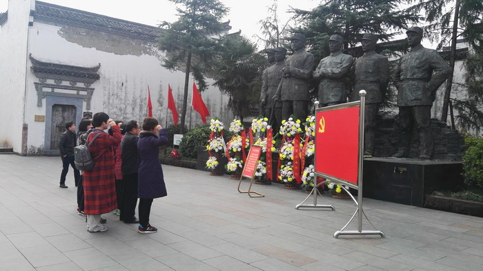 本网讯(环工学院 昝树婷)为学习贯彻党的十九大精神,落实全面从严治党的要求,坚定党员的理想信念,提高党性修养,扎实推进“两学一做”学习教育常态化制度化,12月2日上午,党政管理与实验中心支部赴徽州区岩寺新四军军部旧址纪念馆开展党性教育。