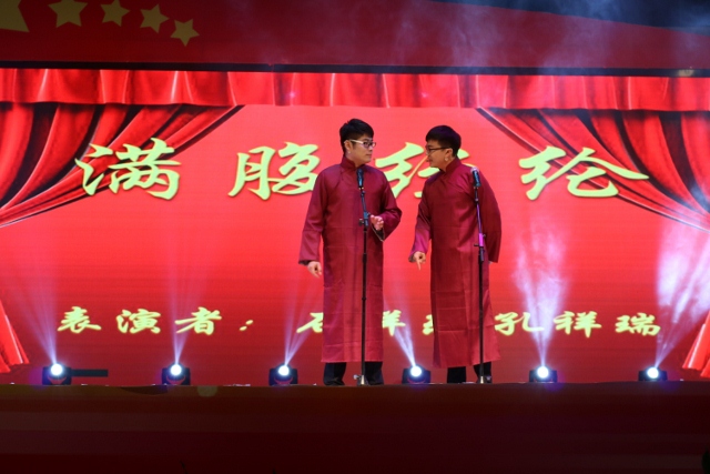 青春献礼十九大,同心共筑中国梦。舞蹈《盛世花开》气势如虹,摇曳生姿,展现出环工人蓬勃向上的精神面貌,饱含真情祝贺十九大的胜利召开;师生合唱《绿叶对根的情意》曲调悠扬,歌声中溢满师生之间融洽温暖的情谊;相声《满腹经纶》笑点迭出、引人入胜,给大家带来轻松欢笑;戏曲《戏韵联唱》字正腔圆,韵味十足,淋漓尽致地展现了传统戏曲的魅力。