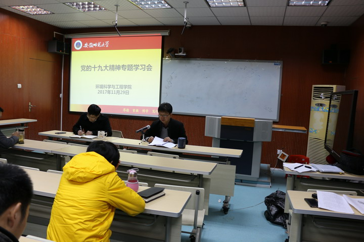 本网讯(环工学院 党委) 11月29日,环境科学与工程金沙城js9线路检测中心召开本年度第七次教职工大会,集体学习党的十九大精神。学院全体教职工参加了会议。会议由院长周守标主持。
