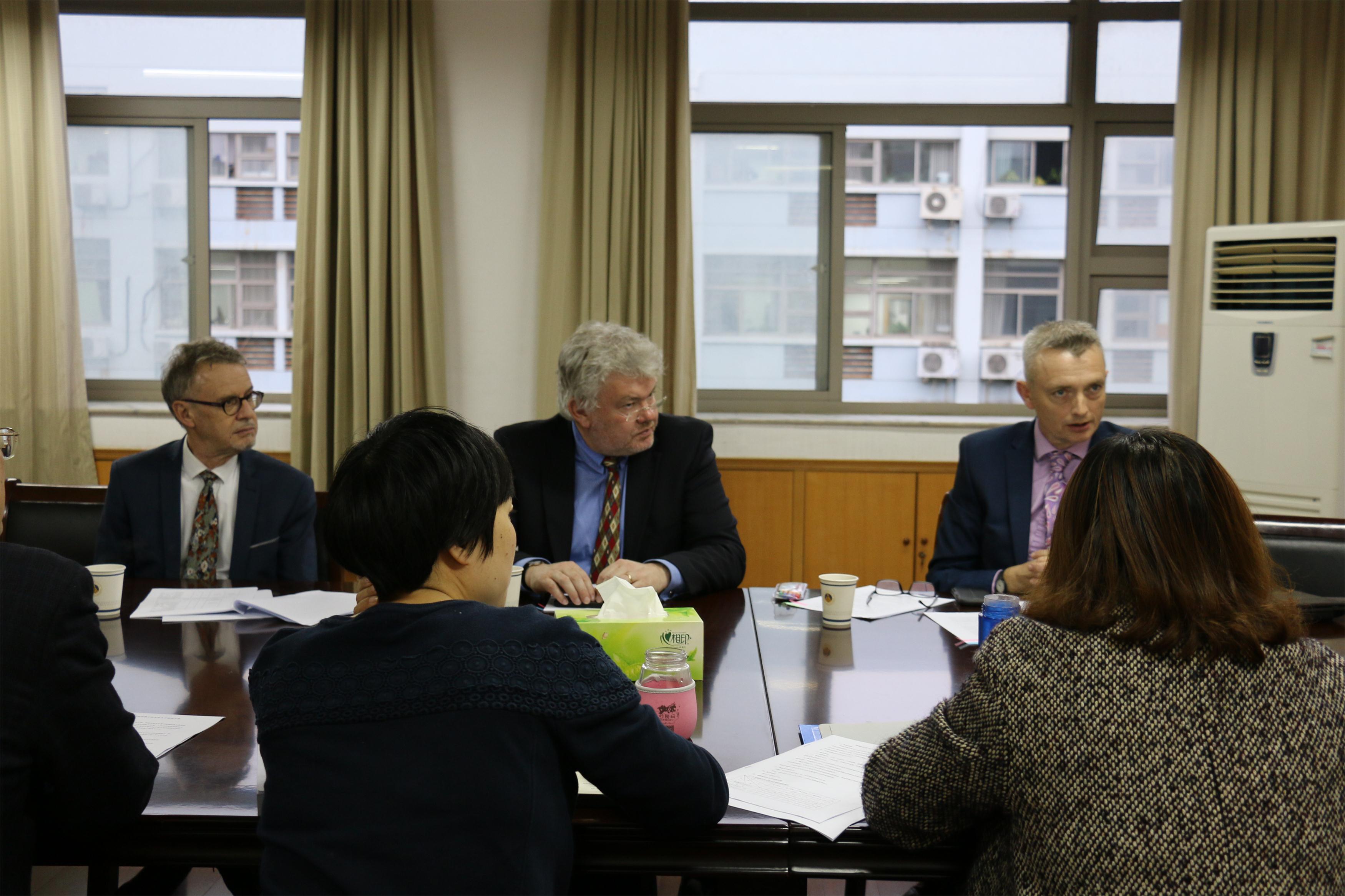 11月16日下午,英国班戈大学(Bangor University)自然科学部部长Colin Jago教授、海洋科学学院院长David Thomas教授和高级讲师David Huws博士访问环工学院,商谈双方合作办学事宜。环工学院院长周守标,副院长昝逢宇、杨如意,以及青年教师刘畅、严帆等出席会议,国际教育学院李一鸣老师陪同访问。