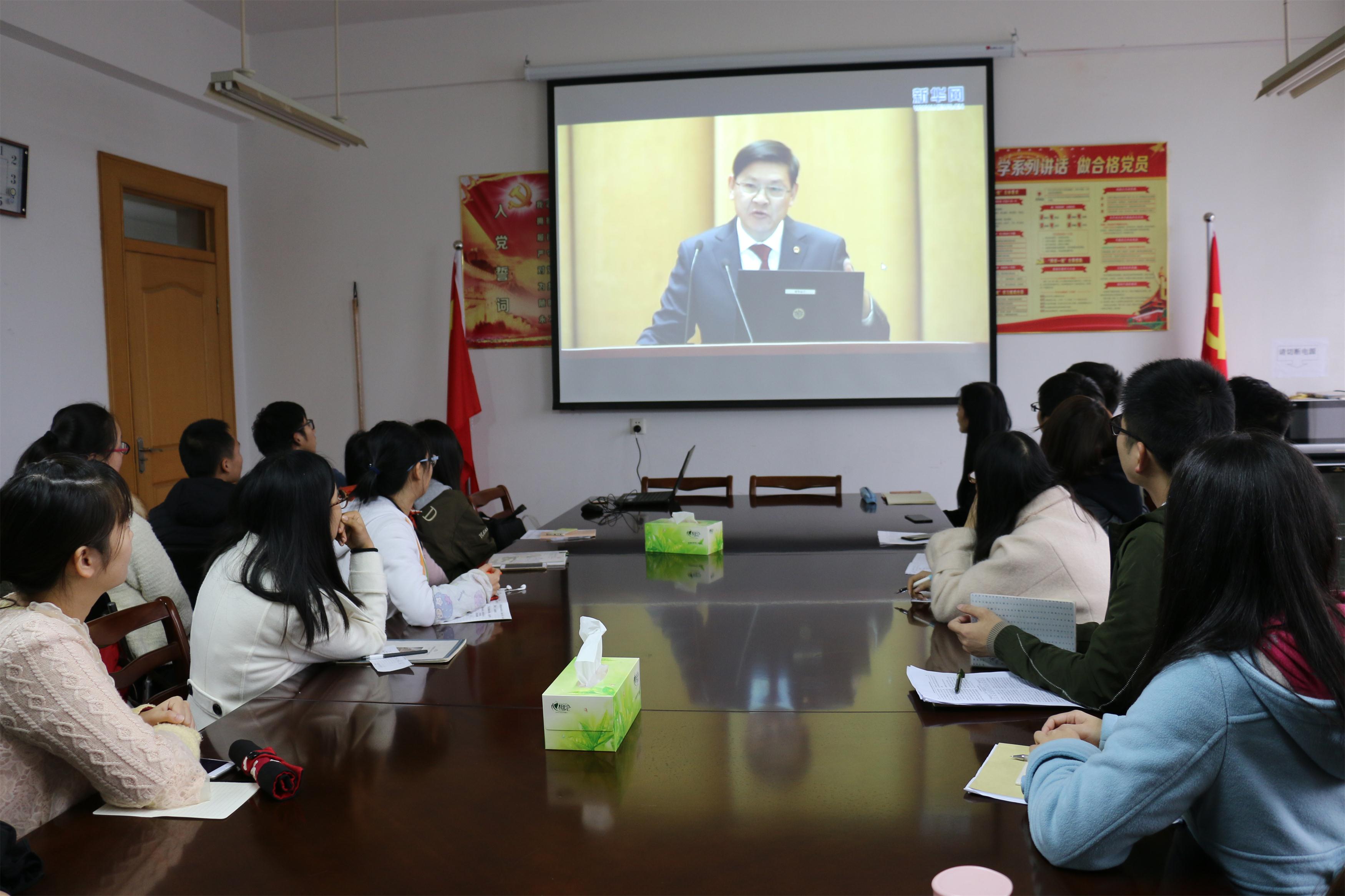 11月14号下午,在环工学院行政楼三楼会议室,环工学院组织观看了“学习贯彻党的十九大精神”——2017年全国科学道德和学风建设宣讲教育报告会。环工学院全体研究生观看了此次报告会。