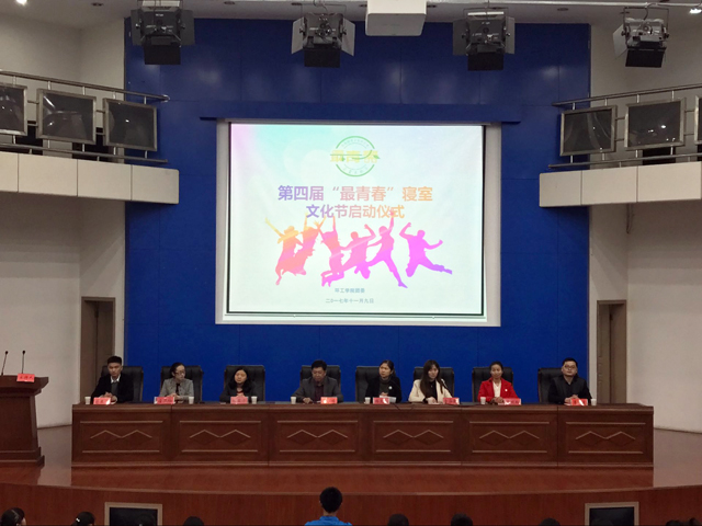 (本网讯 环工学院学生通讯队)为丰富同学们的校园文化生活,营造良好的生活学习氛围,加强寝室成员间协作精神和集体荣誉感,用青春活力展示环工学院魅力,11月9日晚上7:00,环工学院在敬文报告厅隆重举行第四届“最青春”寝室文化节启动仪式。学院党委书记王峰、党委副书记杨友谊出席,各级辅导员、大一至大三各班级生活委员、2017级全体学生级参加了仪式。仪式由杨友谊主持。