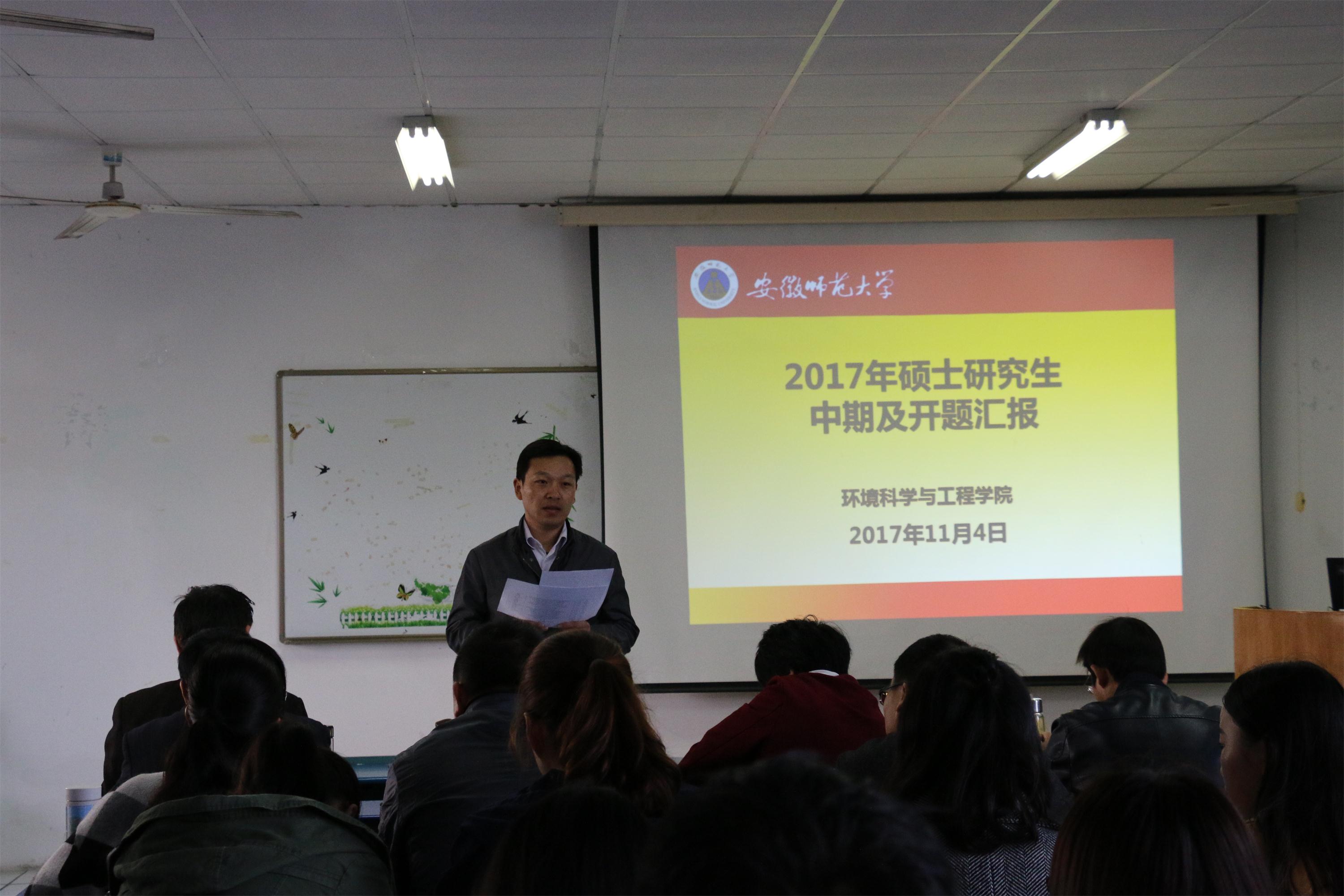 11月4日,环境科学与工程学院2015级硕士生中期检查和2016级硕士生开题报告会在学院实验楼举行。报告会分为环境化学和环境生物学两个小组同时进行,全体导师和研究生参加了此次报告会。
