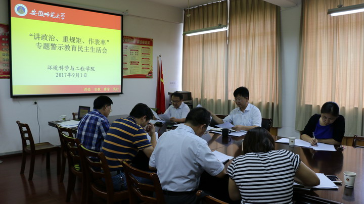 本网讯(环工学院 党委)为深入推进“讲政治、重规矩、作表率”专题警示教育扎实开展,9月1日上午,环境科学与工程学院在院四楼会议室召开“讲政治、重规矩、作表率”专题警示教育民主生活会。学院领导班子成员、党委委员参加了会议。会议由学院党委书记王峰主持。