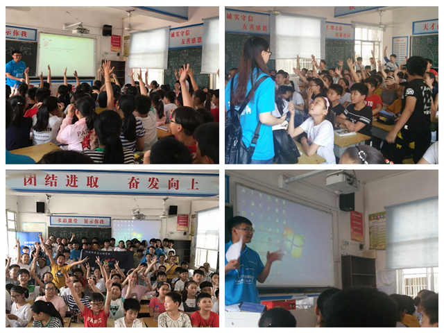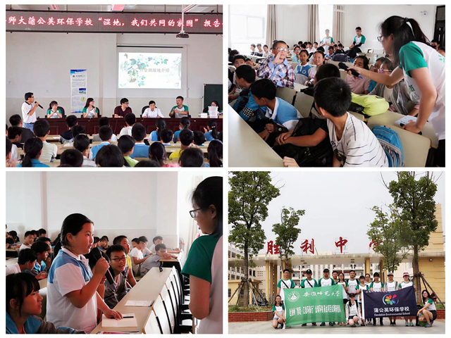 6月29日,环工金沙城js9线路检测中心赴全球环境基金"加强安徽省湿地保护体系"项目点环保调研团队赴池州市东至县胜利镇胜利中学,面向全体初一学生开展升金湖湿地保护与珍稀鸟类保护知识的环保宣讲志愿服务活动。在环保课堂上,志愿者们用生动的PPT、朴实的语言、简单的实物以及寓教于乐的环保知识竞答游戏,帮助同学们在欢笑中掌握湿地保护与珍稀鸟类保护的知识。志愿者们利用专业知识,通过环保课堂将环保梦想植入了孩子们的心中。
