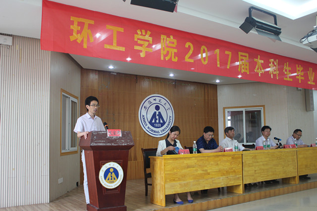 非毕业生代表2014级环境科学专业吴洁致欢送辞,深情祝福毕业生,并表示将向学长学姐学习,继承和发扬学院的优良传统。毕业生代表2013级环境工程专业李皓致答谢辞,向学院老师、学弟学妹表达了衷心的感谢,并祝愿每位环工学子、环工学院、安徽我校越来越好!